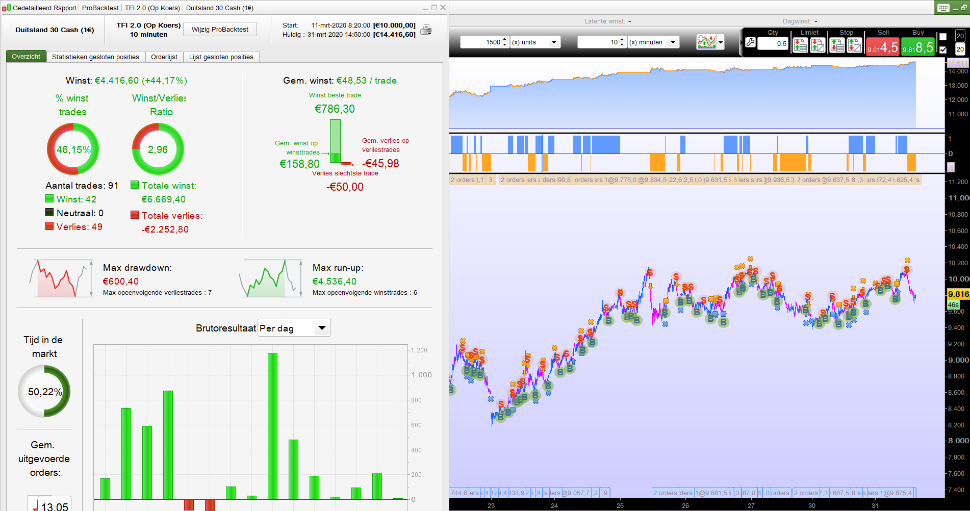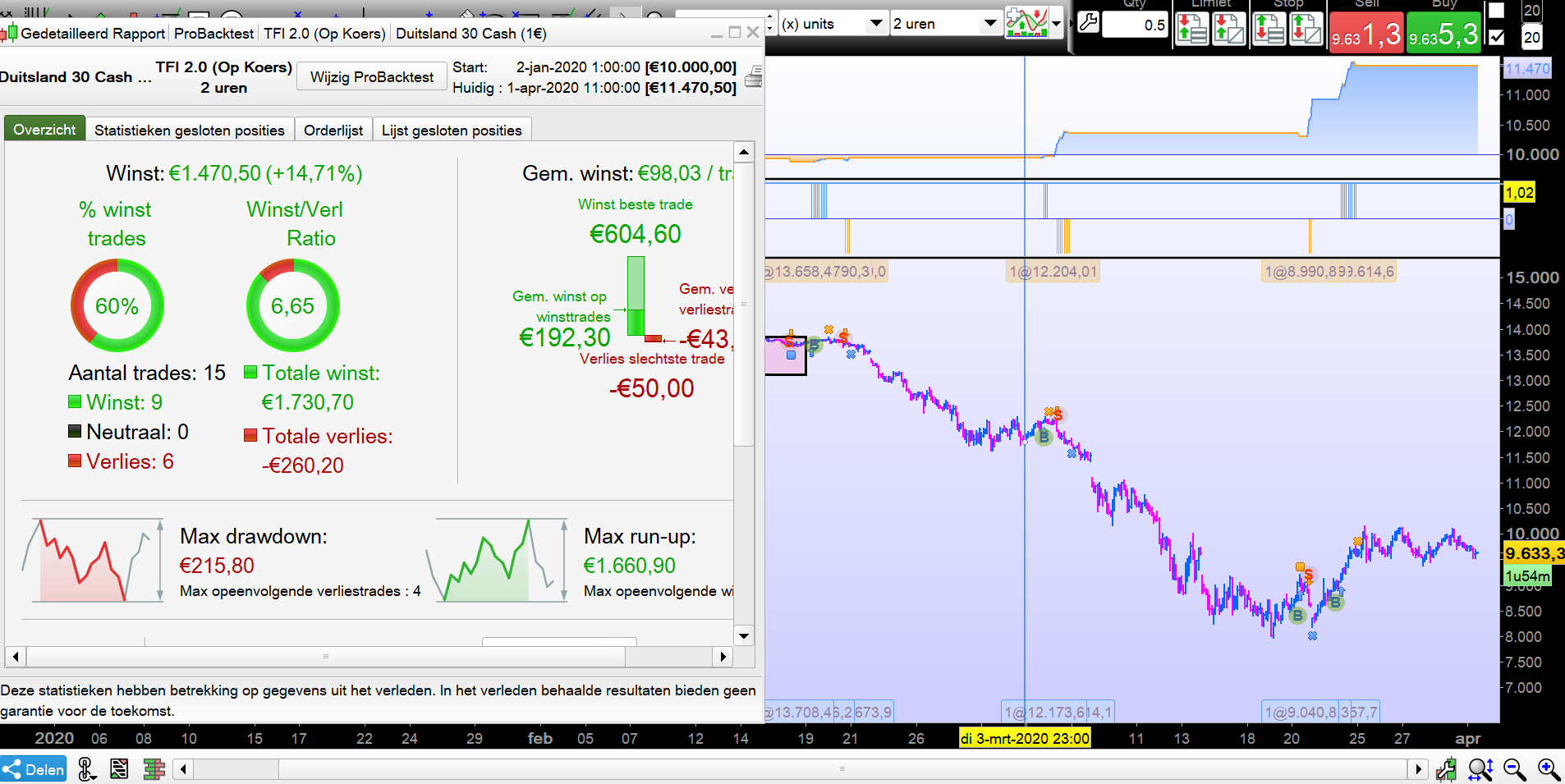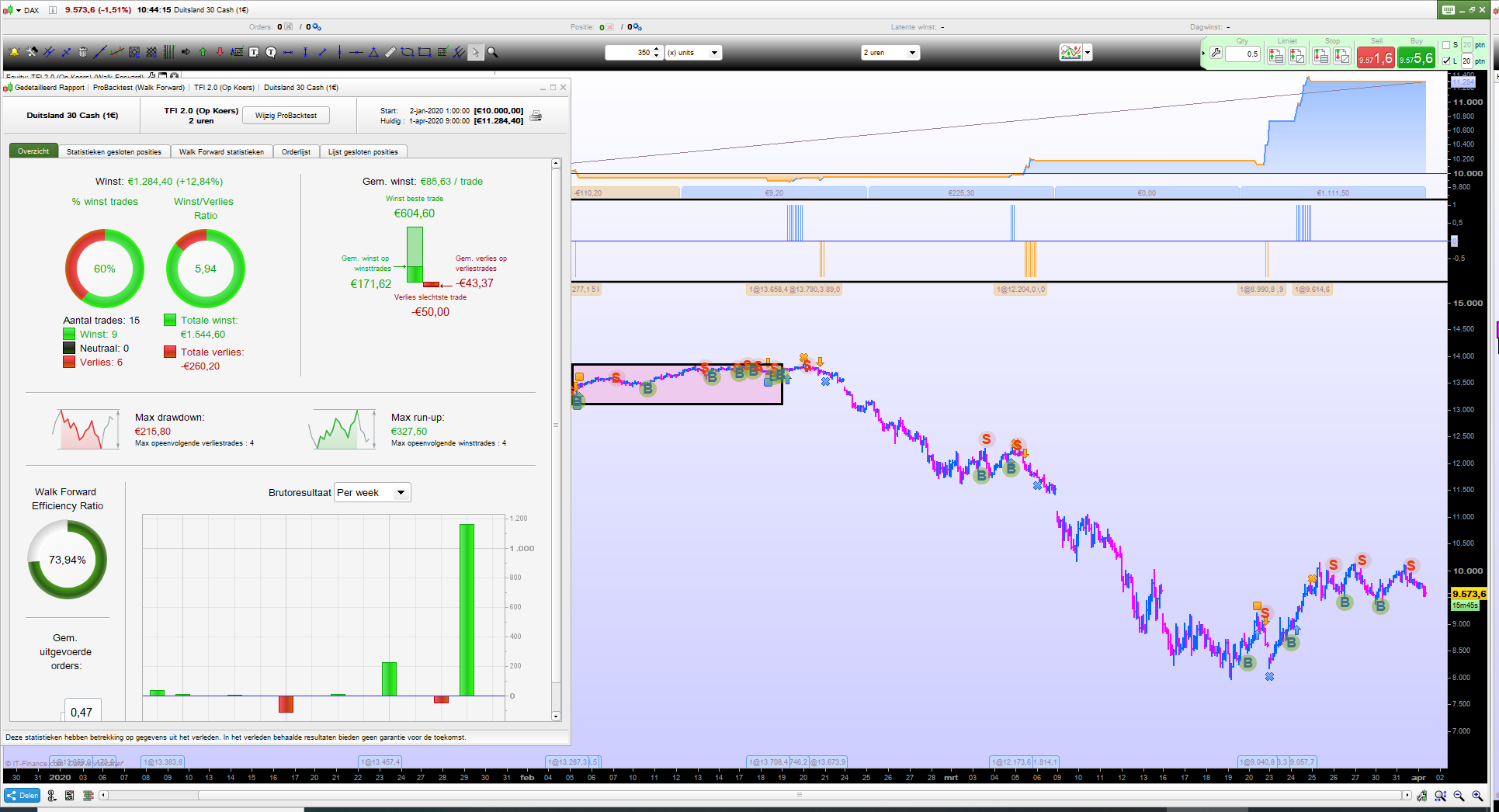 I tested the 2 hours graphic without (zonder) Walk Forward and once with WF for this year. As many other systems, it work well in very trending markets. But be aware in periods of consolidation.