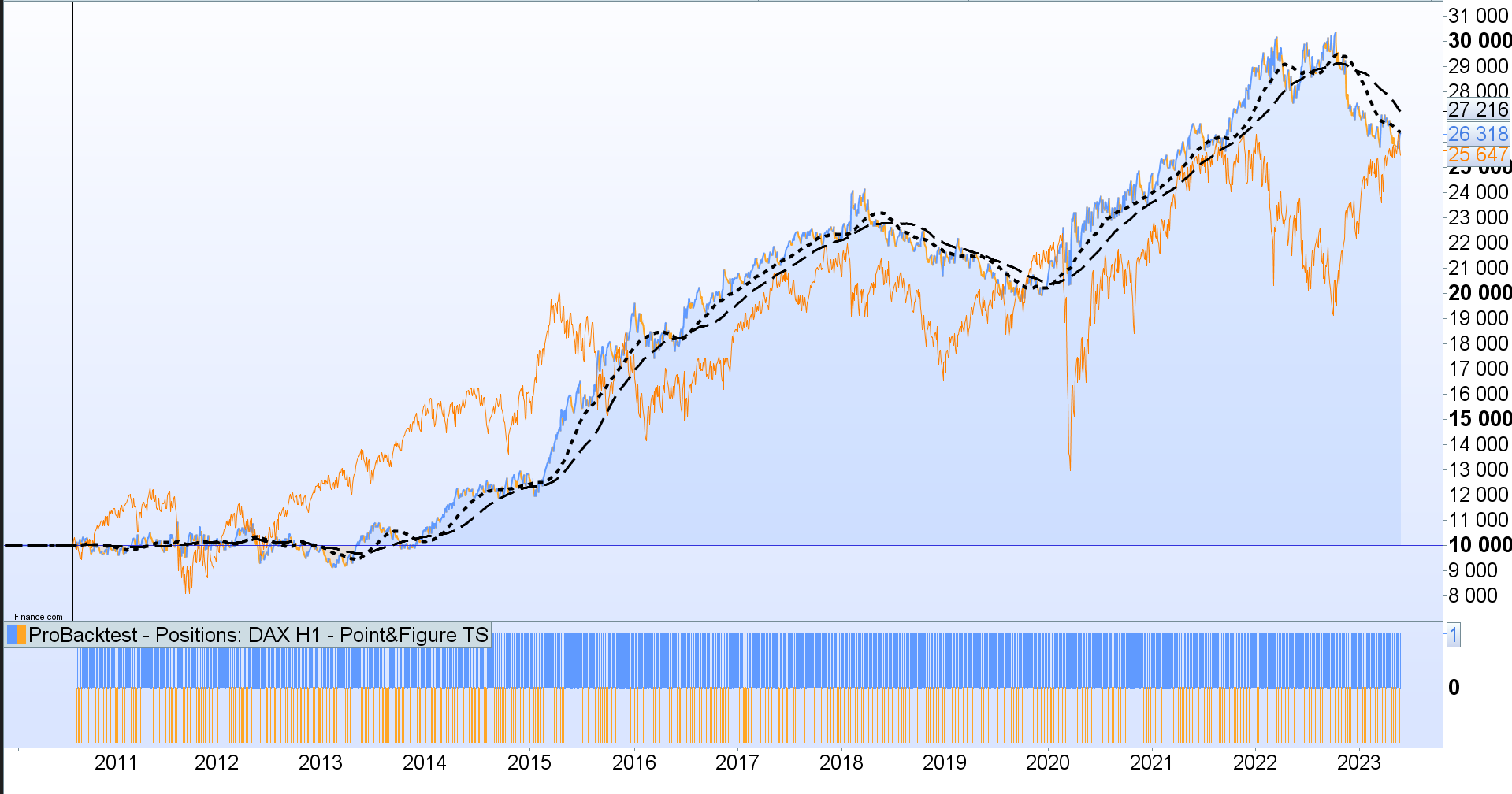 - compares it with a Buy and Hold position over the period