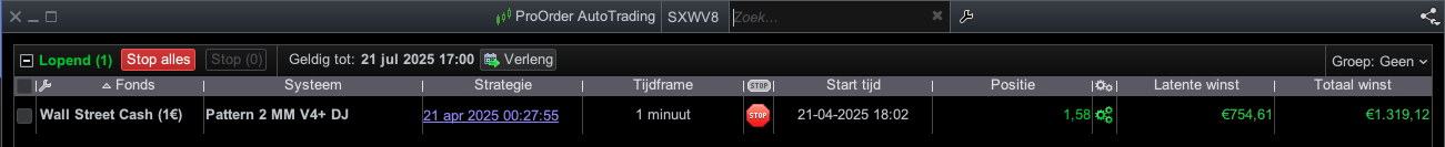 The code runs on a 1-minute timeframe, and I do not use StopLoss, TakeProfit, or TrailingStops. What I do use is a kind of emergency stop set at 2% (based on PositionPerf). The decomposition and standard deviation I use have a period of 100 minutes, meaning it looks back 100 minutes. Every minute, the code checks whether a characteristic of the signal crosses a certain threshold. In earlier versions, these thresholds were static, but in the latest version, they are dynamic, based on the aforementioned standard deviation. Only these threshold values have been optimized, and that optimization was done over a dataset of 200k units.