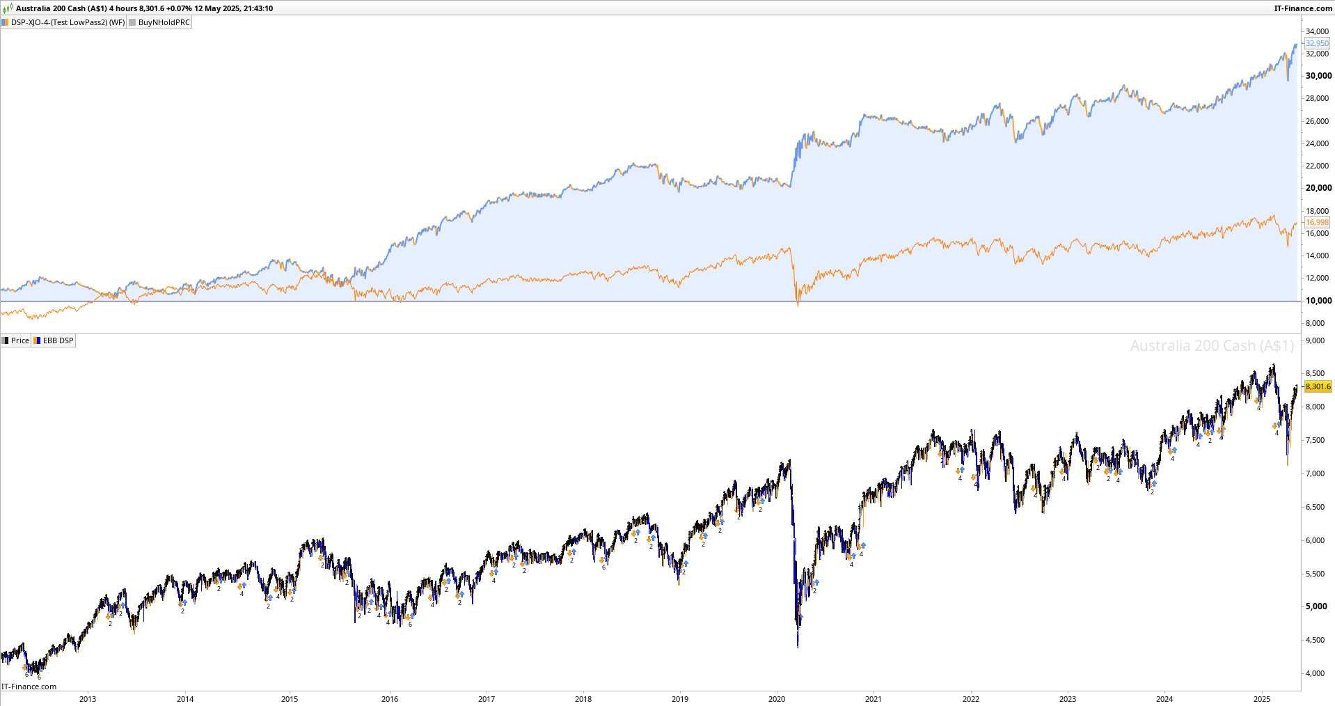 Great. Thanks, yes I have tested it for robustness and it works on many indices incl ftse, dow…No optimisation. I’m very careful here. I don’t like 4hr but it suits my thin market. Actually built it on the Dow 60% data.