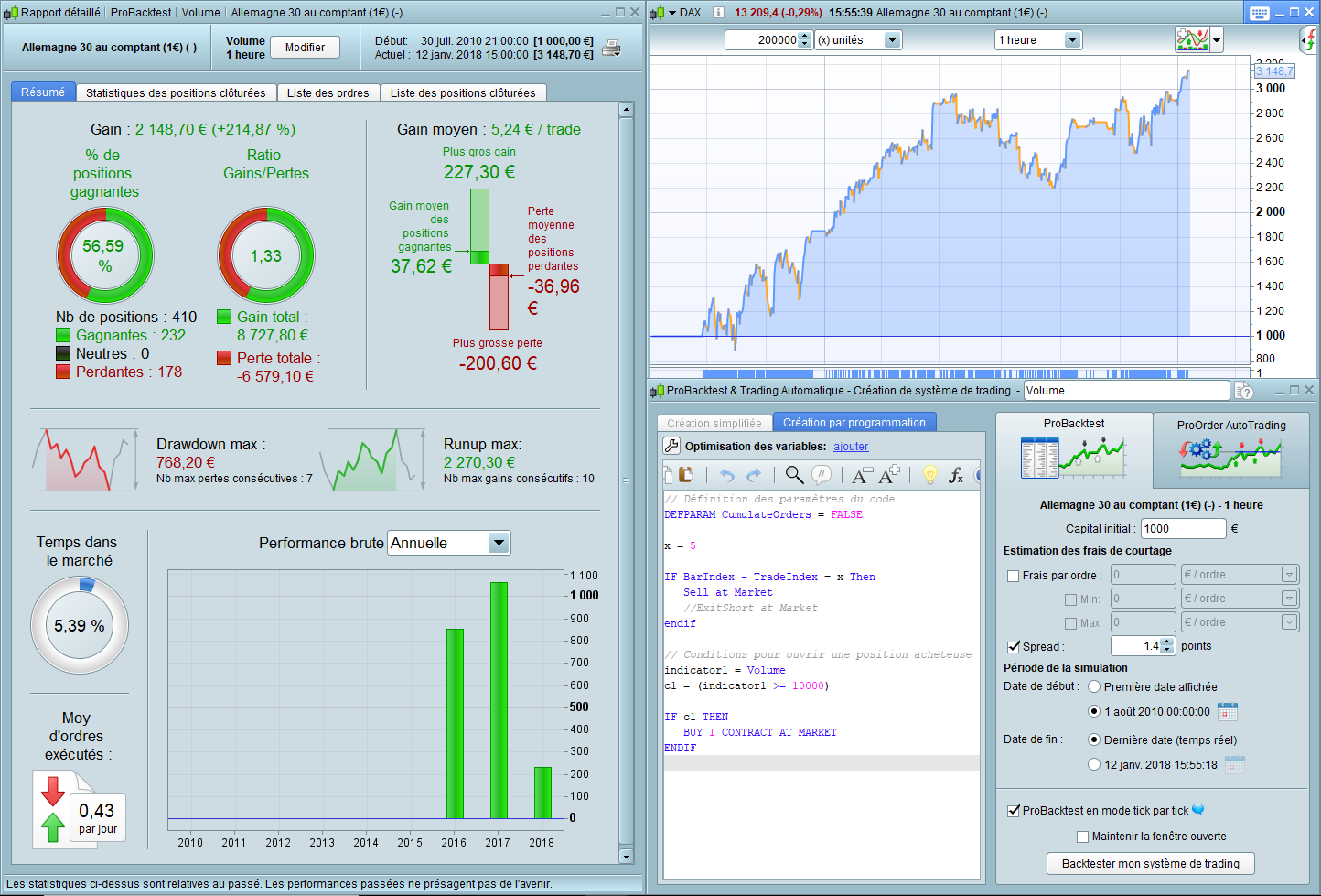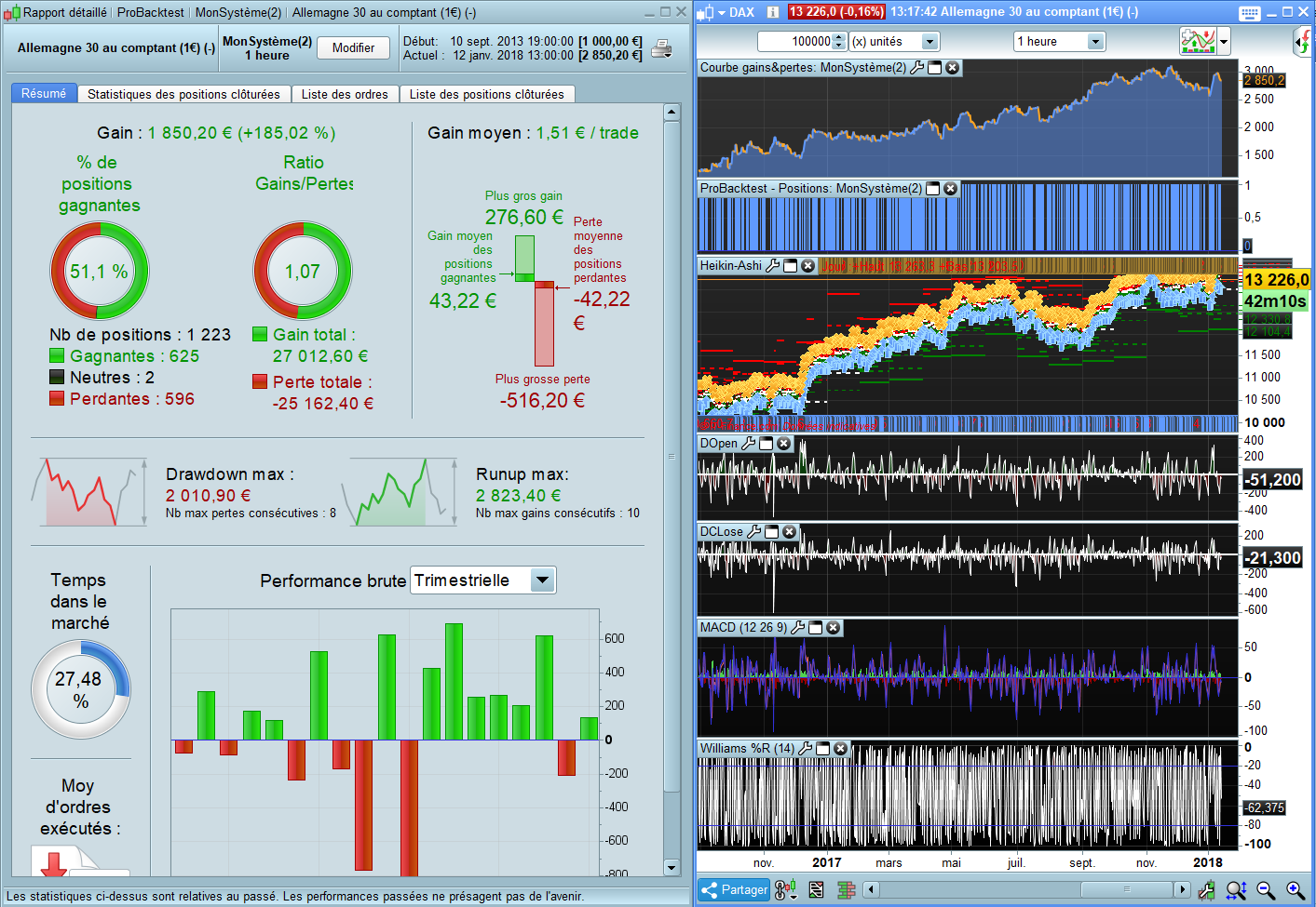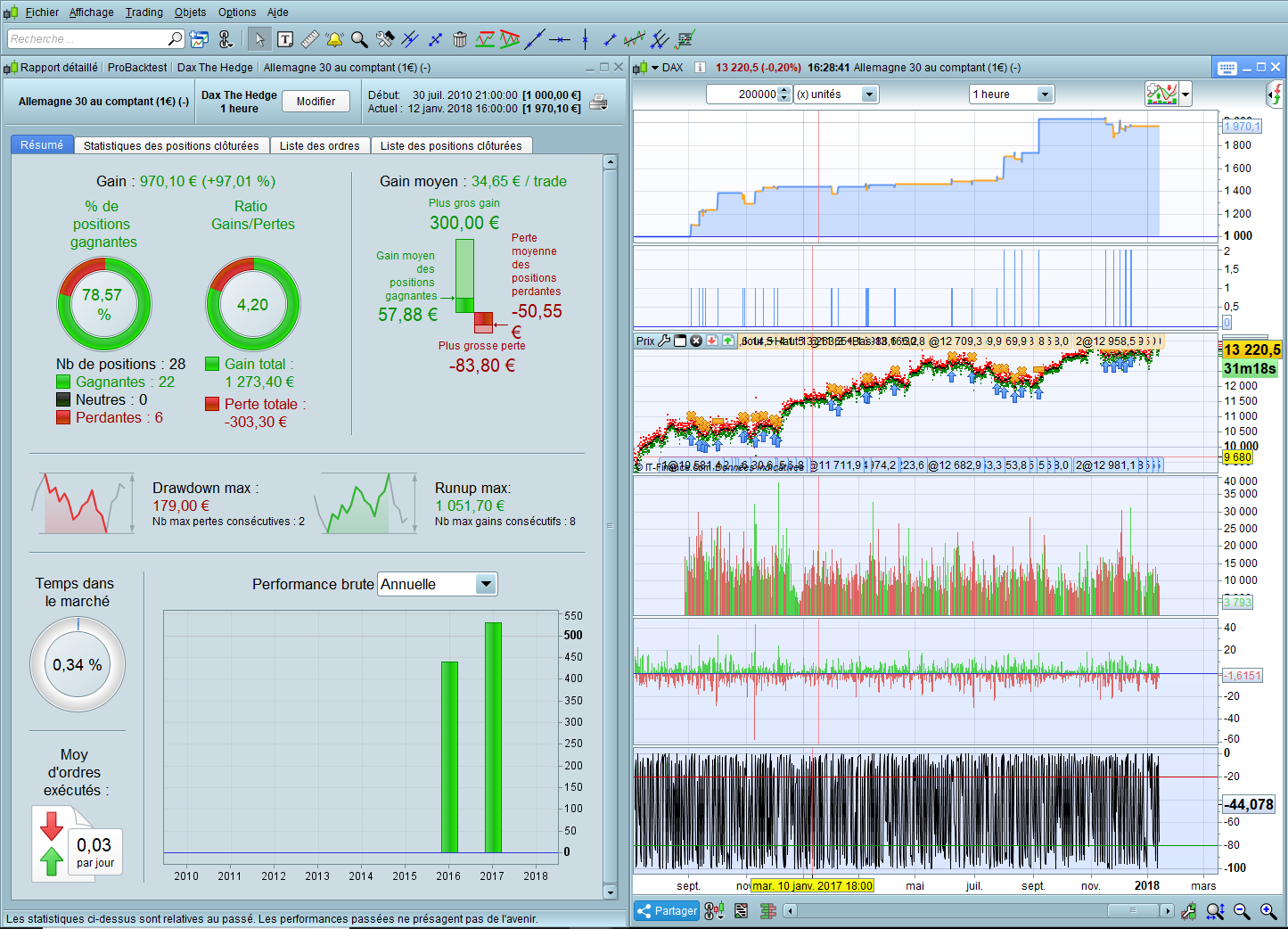 The following candidates had an Hedge (more money than the begining of the test…) : The MACD, the Volume and the %Williams. I did not tried them all.