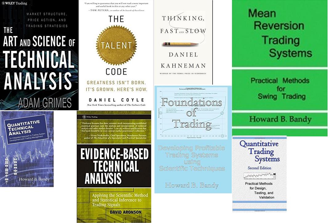 Here are a couple resources and not all trading books that i believe will assist the journey Howard Bandy has a few youtube vids worth watching as well . Thinking Fast and Slow is a must read imo