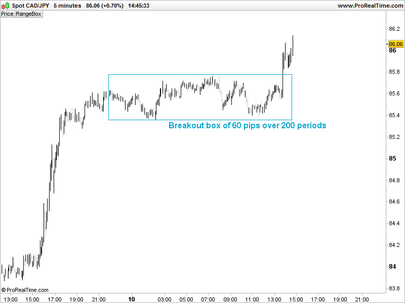 A simple breakout box shape on the last 200 periods and if the price oscillate between 60 pips :