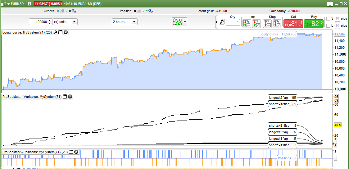 Another test we can do to see how exit condition biased a strategy is by adding 1 to a flag every time an exit condition is hit and GRAPH the results. Like this: