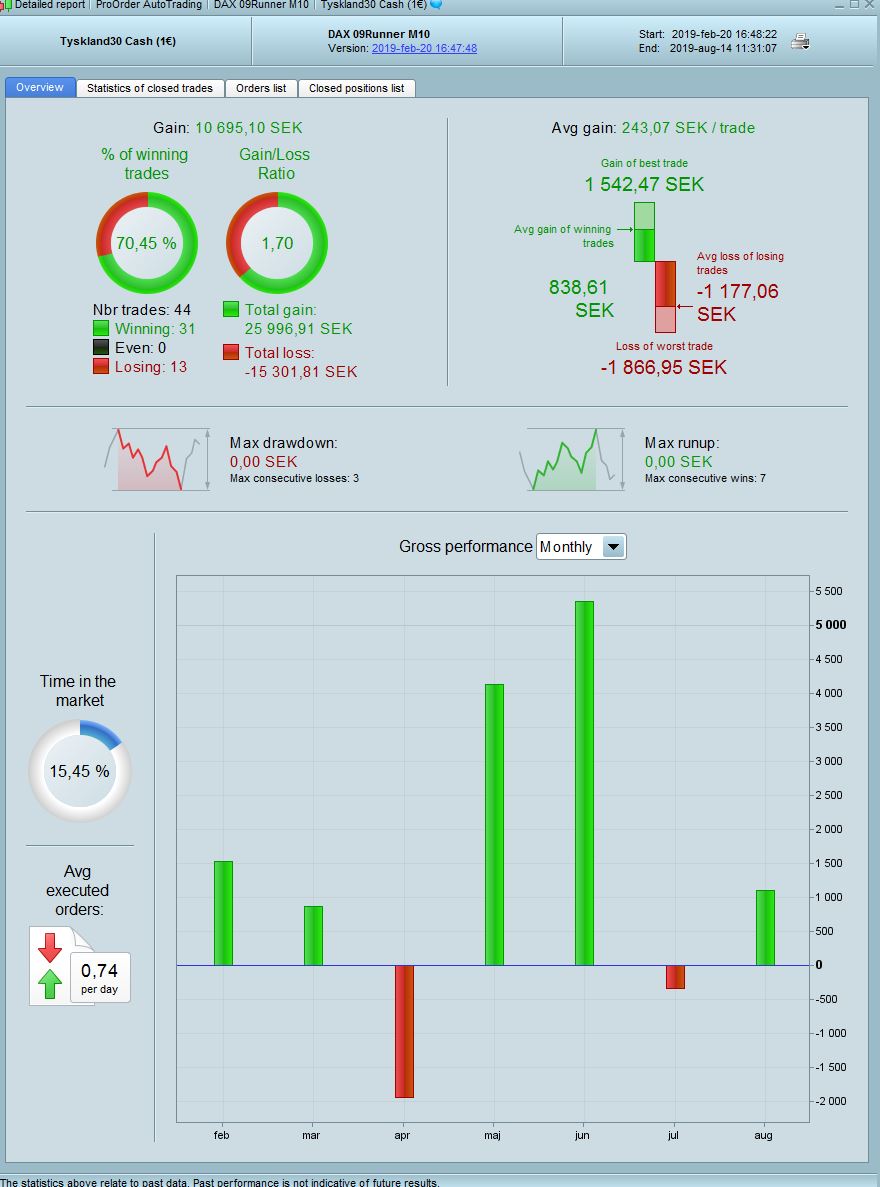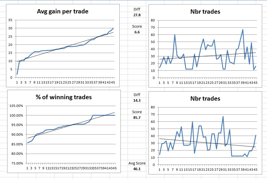 I also ran a robustness test on my modified 10 minute version. The average gain per trade score is not great but the trade numbers are also very low so it is not a very conclusive test.