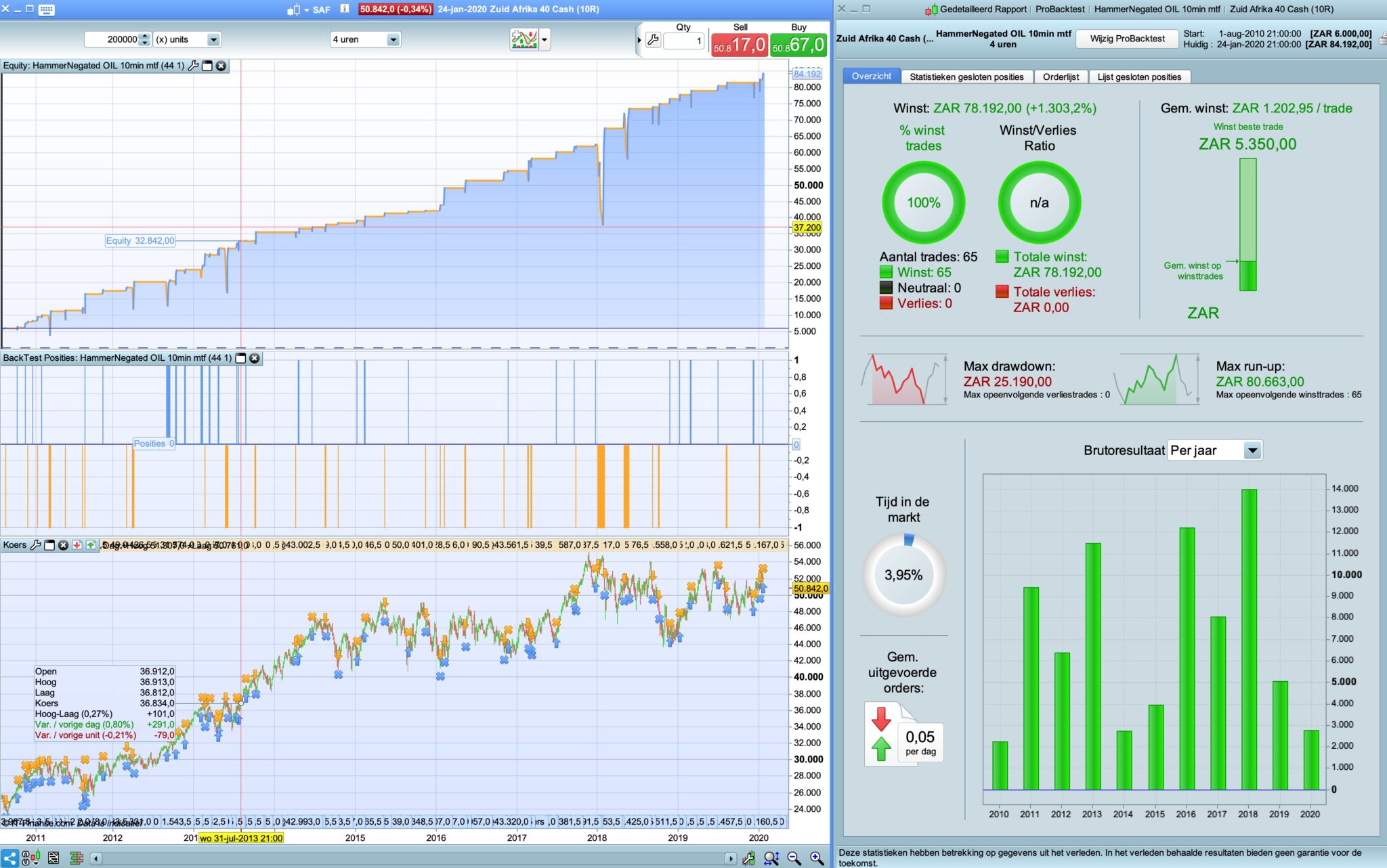 You’re not given us many leads here! One thing I notice that a long position is kept some time even the index goes down. Somehow it gives me the impression that perhaps you modified HammerNegated OIL 10min strategy.