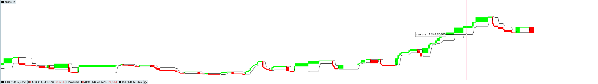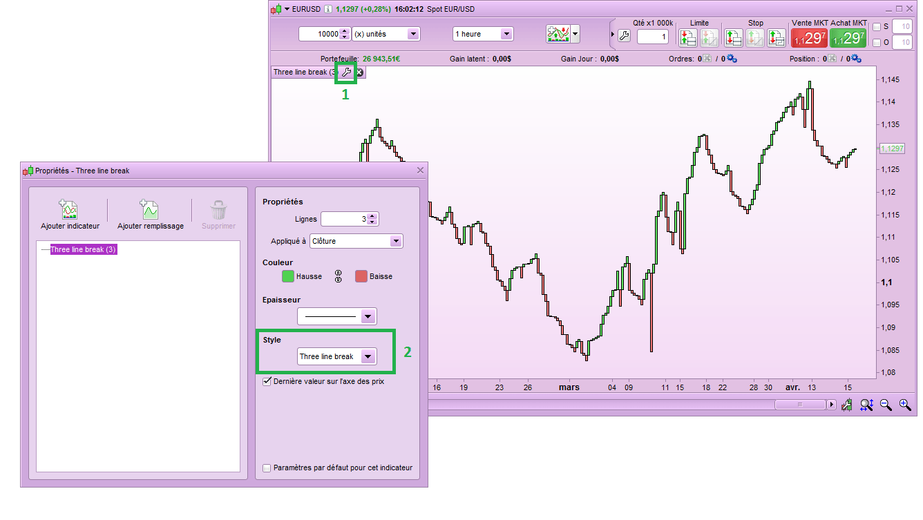 Pour repondre à la question de l’ami Doc Quelle utilité de faire une bougie 3 lines break ? Pareil que pour une HA. Pour l’utiliser dans des codes d’indicateurs, ou de backtests, ou de strategies. Comme disait supertiti, cest un souvent un bon trigger. Ci dessous, j’ai ajouté bougies et couleur au code transmis par Eric que je remercie. J’ai essayé d’obtenir les memes couleurs que celles de la plateforme Certaines bougies sont conformes d’autres non. Si quelqu’un pouvait regarder. Je sais que je ferai pas mieux (je comprends pas bien le code de base :)). D’avance merci.