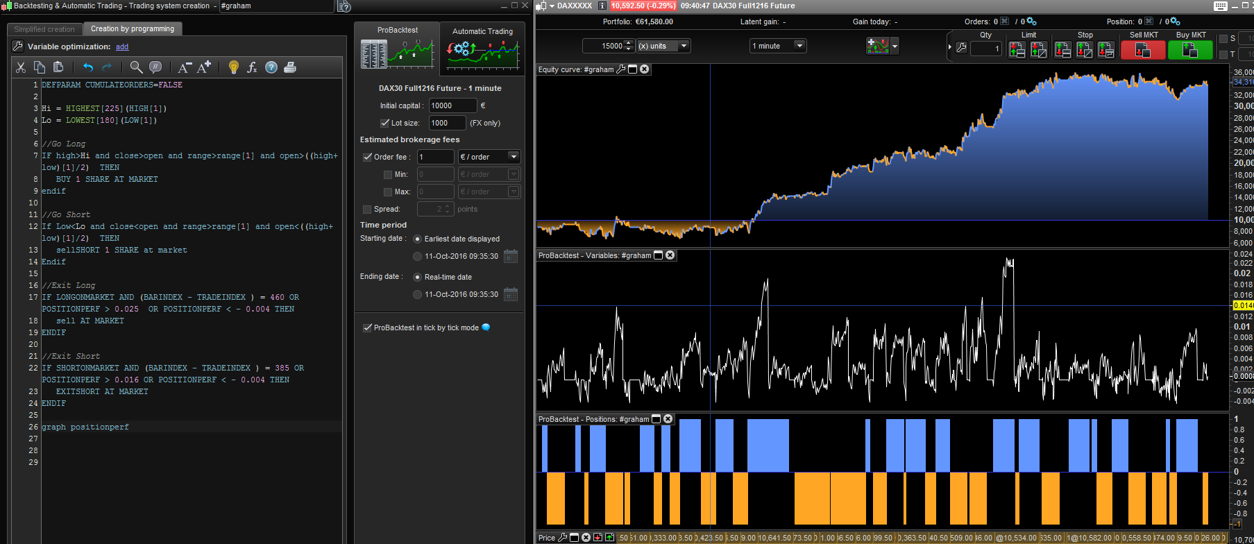 You will note from the ‘GRAPH Variables’ that the Trade on 29 Sep 16 @ 08.16 also hit the POSITIONPERF < – 0.004 (see the GRAPH variable at the bottom of the Equity Curves .jpgs above) but this Trade @08.16 was NOT reduced to 0 bars (as was the Trade on 29 Sep 16 @ 08.30).
