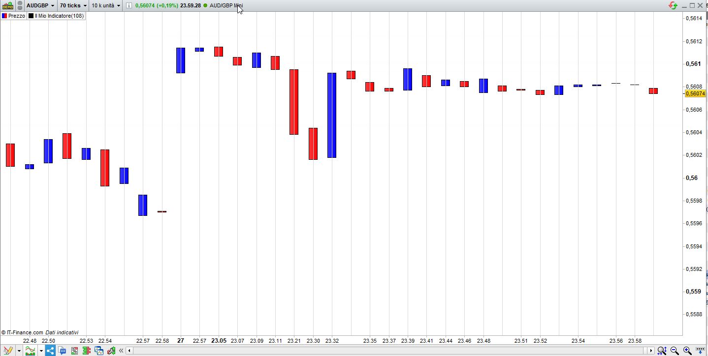 sono un novello del FOREX e avrei bisogno di settare un ticker counter su un grafico a 70′ ticks con avviso ogni 70 tick.