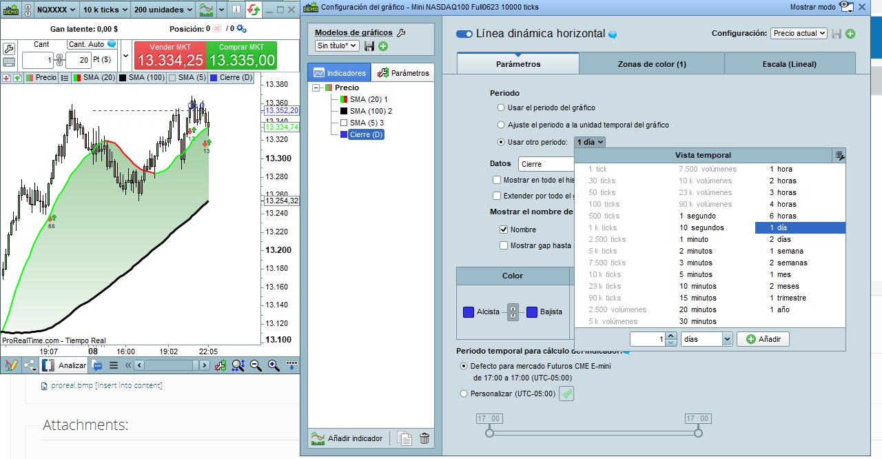 If you want to see the horizontal line moving with bar close in (x) ticks in this PRTv12 version, instead of using “usar otro periodo” you can use the menu choice just above in your screen capture: “Ajuste el periodo a la unidad temporal del grafico” (and to see full line you can also tick option “extender por todo el grafico”), as in attachment 1 (French version but same menu location).