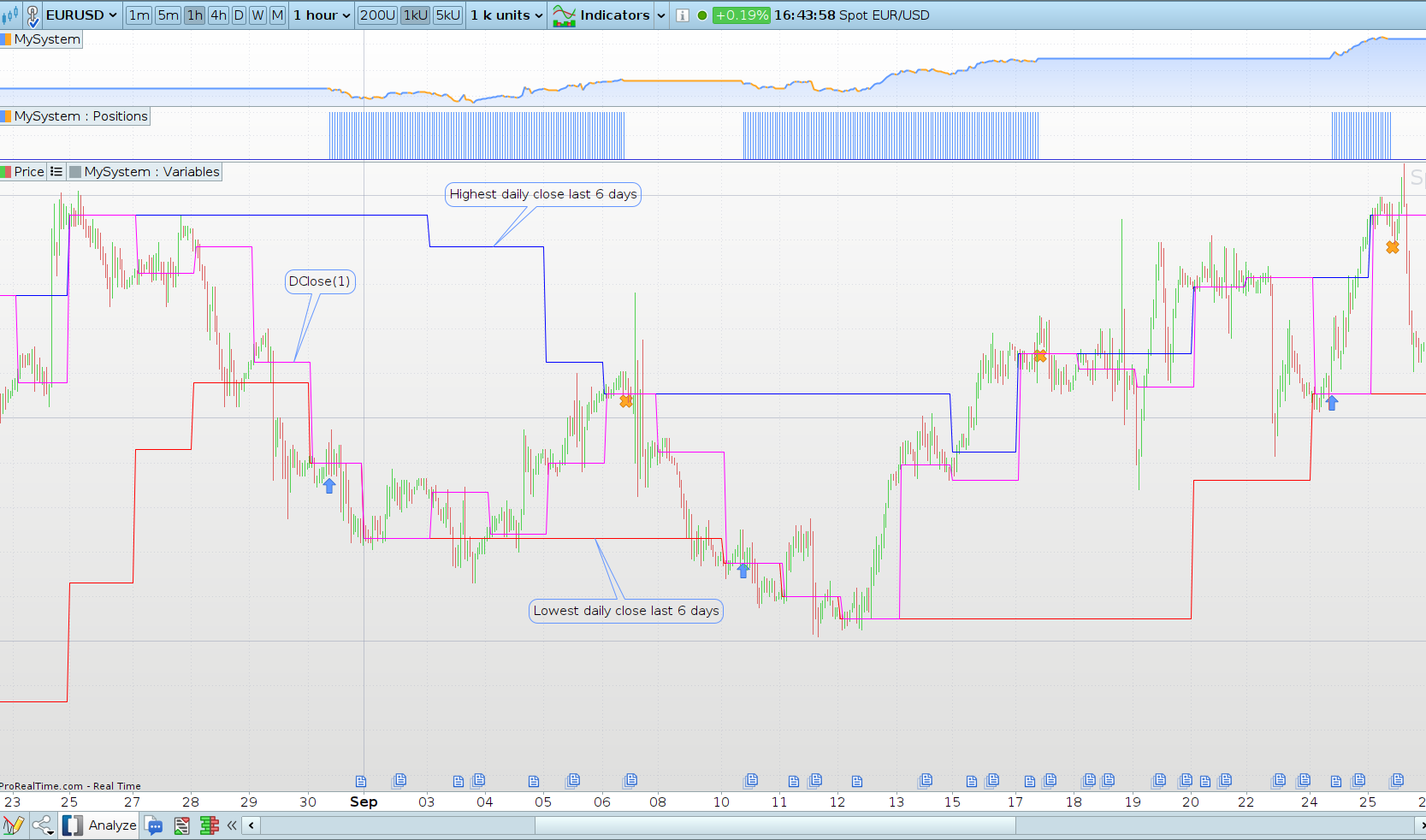 Hallo! Sie können den höchsten Preis der letzten 6 Perioden in einem täglichen Zeitrahmen berechnen und dann zu einem niedrigeren Zeitrahmen zurückkehren und die Ein- und Ausstiegsregeln festlegen. Ich gebe Ihnen ein Beispiel mit der Berechnung, dann können Sie sie mit dem von Ihnen bevorzugten Exit und Stop-Loss bzw. Take-Profit vervollständigen.