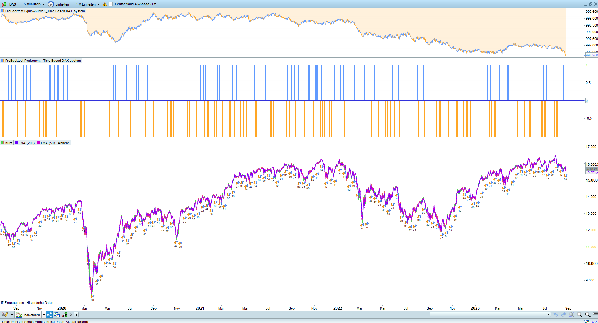 I have no real clue about dax morning/noon/afternoon cycles – I mean I did not test them ever. but since overnight anomaly is generally well known, I was “stealing” the idea and did my own implementation for cfd and futures (as somebody told: “steal the ideas, but not the implementation”) – and it seams to work. it has ultra-simple logic, no GDs/SMAs or other indicators, just checking if prices around the end of main stock trading hours (let’s say 17:30) are stronger than at opening in the morning (09:00) and then buying and holding overnight, just with stop loss, but no targets – simply selling in the morning before the cash market opens. very few lines of code. it’s consistently profitable, but not extraordinary profitable strategy. you have to consider also cost of holding the position overnight – these costs increased a lot recently with increasing interest rates. so on one hand it might work better with futures (no overnight costs) than with cfd, on other hand with cfd you have an option to choose “guaranteed” exit stop (which again cost some points but only if triggered) – which prevents you from huge slippage / overnight gaps / over-weekend gaps while guaranteed stops are not available with futures trading (well, maybe one can create it somehow with options, but again I have here no real clue about “how”, just rough idea). no free lunch, as always.