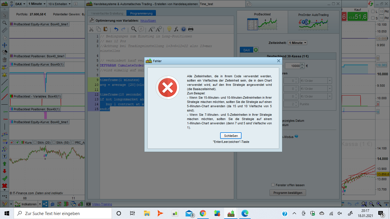 Bitte versuchen Sie beim nächsten Mal, beim Posten einer Nachricht im Forum expliziter zu sein. Ihr Problem ist, dass Sie in Ihrem Code einen Zeitrahmen von 10 Sekunden verwenden und diesen innerhalb des Zeitrahmens von 1 Minute starten. Der Code muss innerhalb des minimalen Zeitrahmens gestartet werden, in Ihrem Fall also innerhalb von 10 Sekunden.