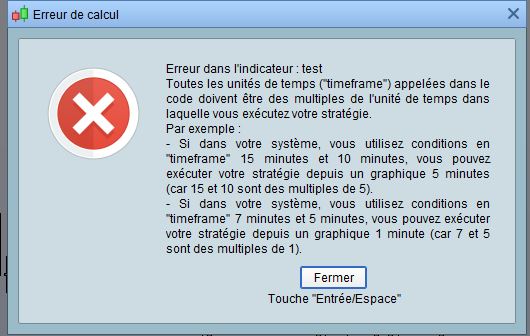 Hors lorsque je copie ce code dans un indicateur, il me retourne un message d’erreur me disant que les unités de temps appelées doivent être un multiple de mon unité de temps courante voir pj.