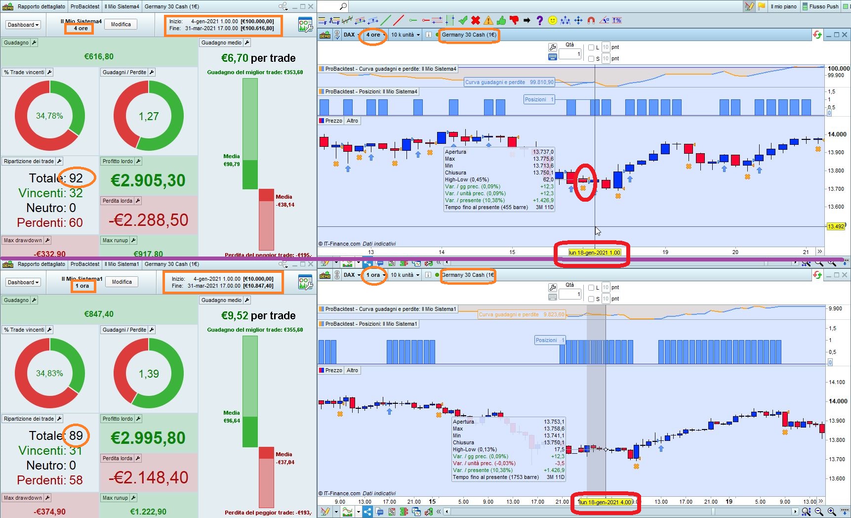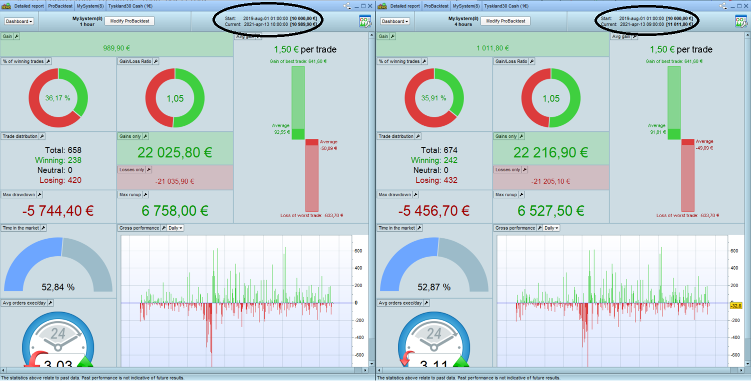 The 4-hour TF opens a few more trades than the 1-hour TF (on the same time range) because tjhe 4-hour TF has a sunday bar, which the 1-hour TF hasn’t.