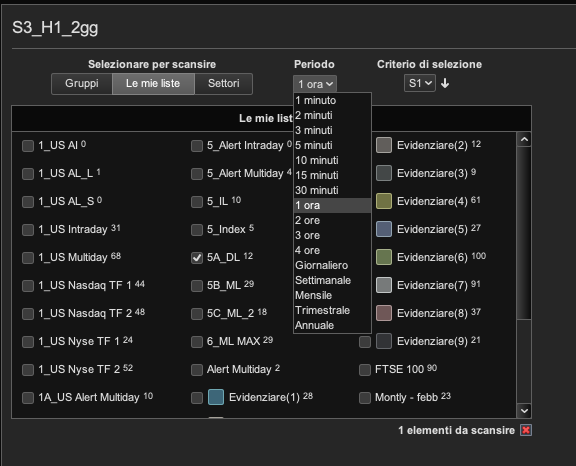 Buongiorno, avrei una domanda: è possibile aggiungere time frame alla scansione proscreener? Alla voce “periodo” ci sono solo i timeframe principali (allegato): se volessi aggiungere per esempio una scansione su grafico a 8 ore, come devo fare? Grazie