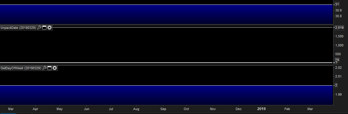 You’re the best! I am having trouble getting the GetDayOfWeek to work, however. It is returning 2 (Tuesday) for 20190329. Any ideas?