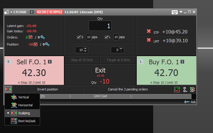 I am on version 10.3 with IG trading FX. My main window panel has “file”, “display”, “objects” & “help”. It used to also have a “trade” button but it is now gone. I am also now missing the “scalping” order book option. I only have vertical, horizontal and best bid/ask.