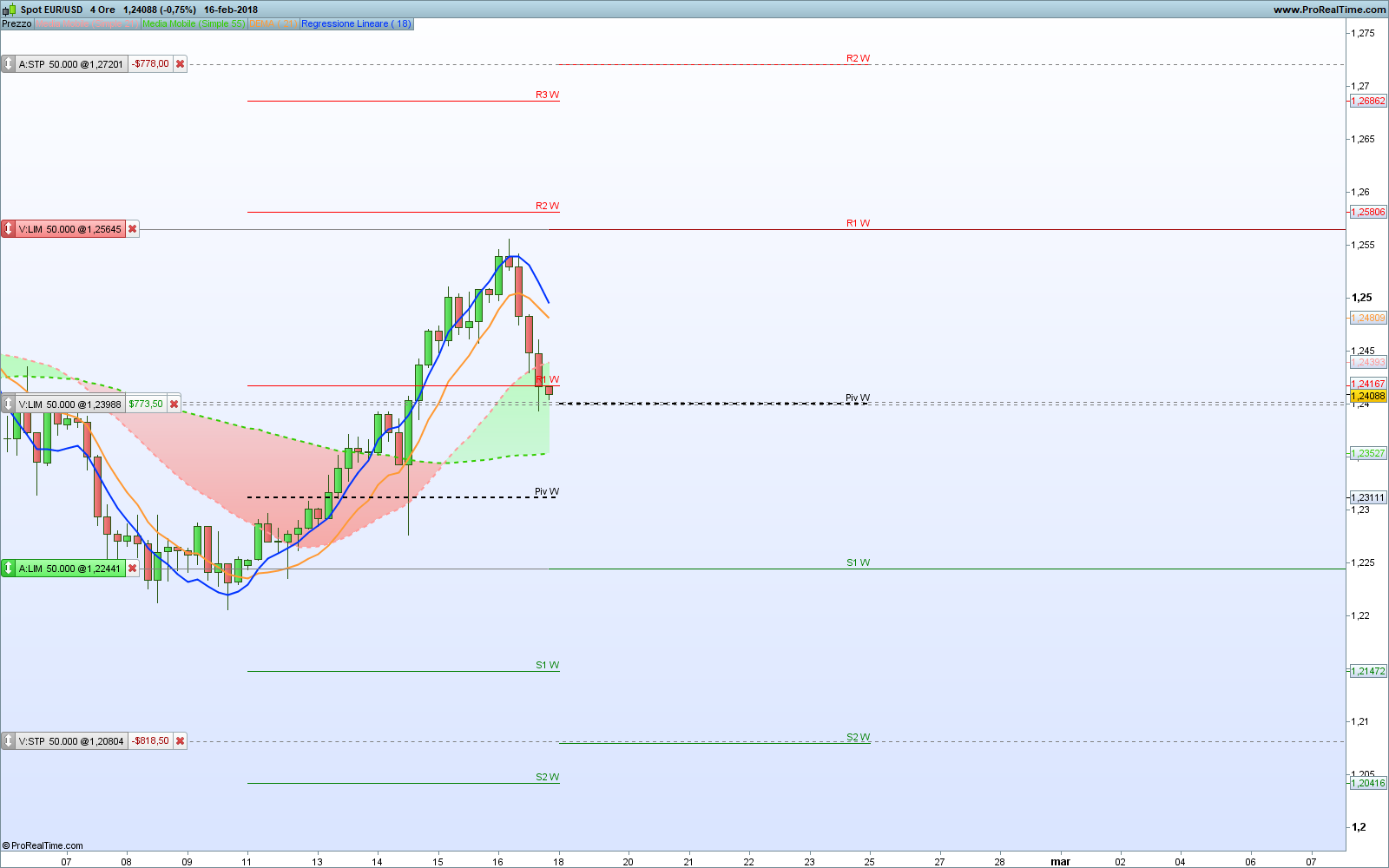 At the begin of the week, it starts 2 pending orders, with related Stop Loss and Target Price.