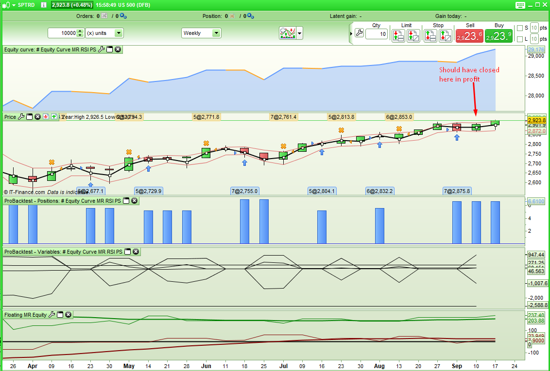 I ran a back test and it can be seen that first of all (and I have reported this before with no answer yet) the trades are shown opening at the decision candle close rather than at the next candle open – and then it does not close when it should close as the trade is in good profit at the close of the weeks candle.