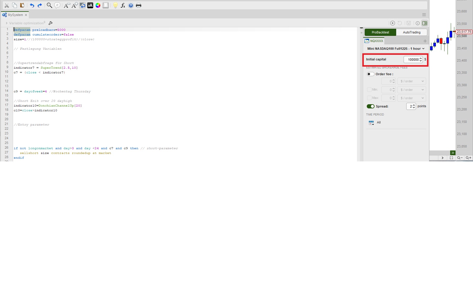 It is on the S&P index and the trades are minimumum size, 0.04. The software notes that the program should open trades but says