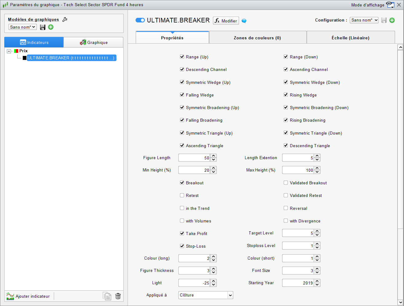 J’ai ajouté des options d’affichage des objectifs de prix et des stops de sécurité. Vous pouvez afficher les objectifs en cochant les cases « Take Profit » et « Stop-loss ».