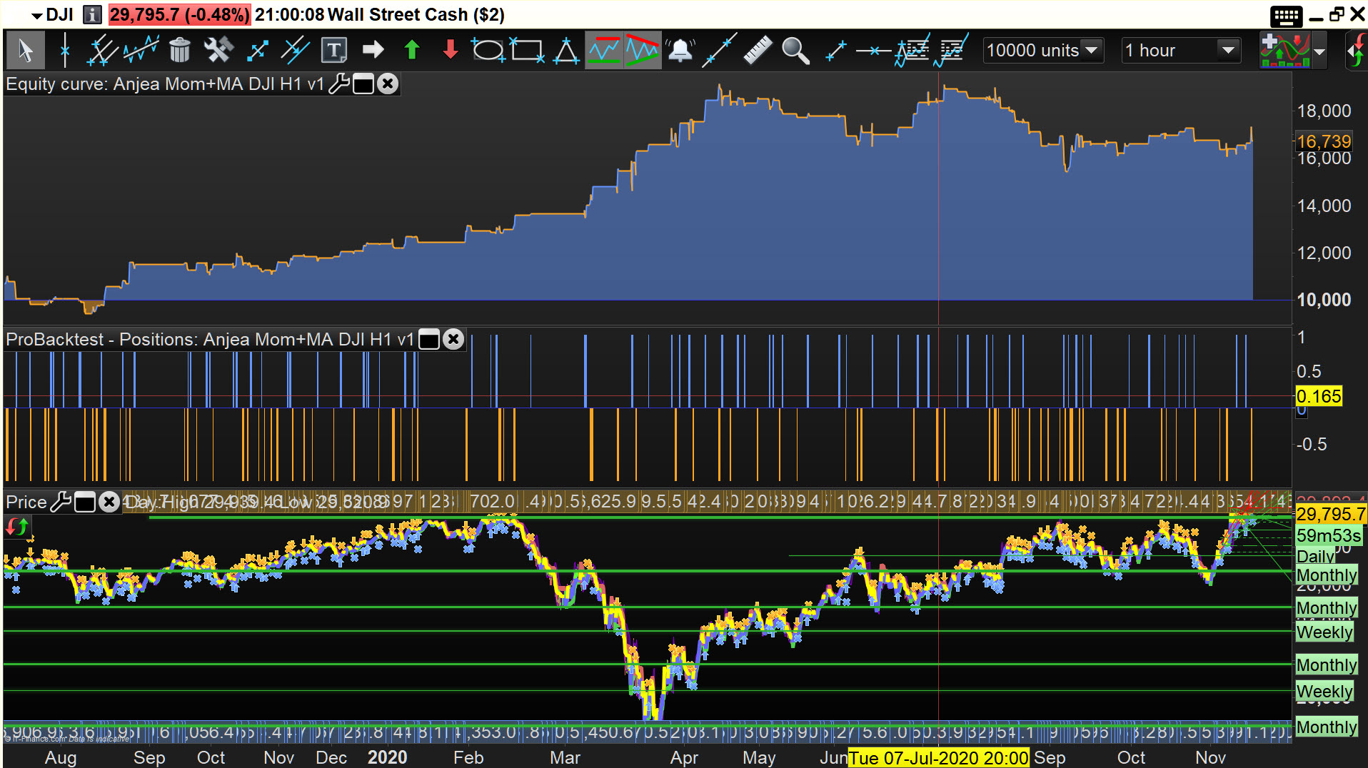 Mi intención como se puede ver en la imagen es usar los indicadores Momentum y MM.