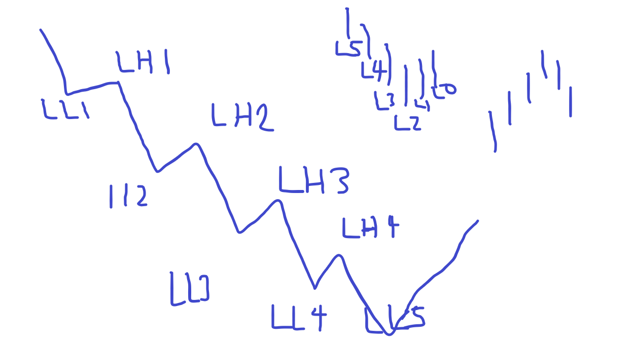 In between each lower lower there will be a Lower High (which could be the opposite of the description of the Lower Lower above).
