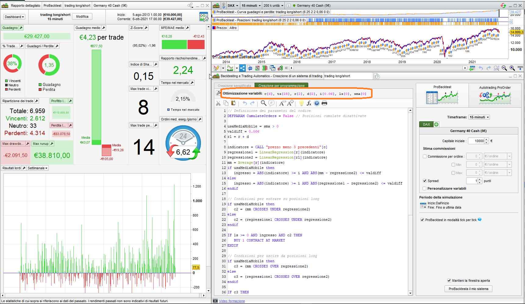 Io l’ho provato con 200K unità, sul DAX €5, sia in ottimizzazione che mettendo tutte le variabili con valore fisso (vedi foto allegata).