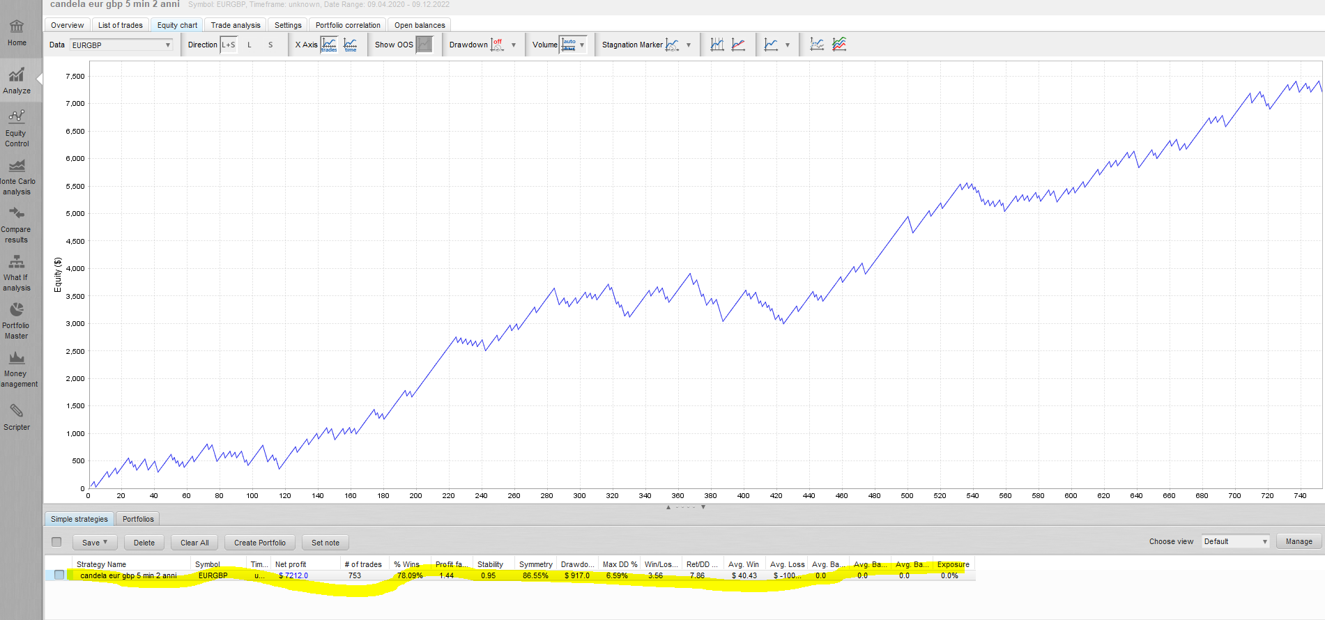 Grazie per aver condiviso il codice. Vedo che hai utilizzato un approccio di data mining per trovare la strategia? O hai usato solo il test monte carlo di quel software? Quale dimensione dello spread hai utilizzato per testare EURGBP?