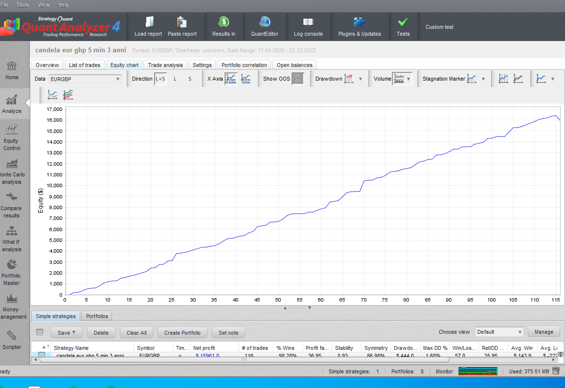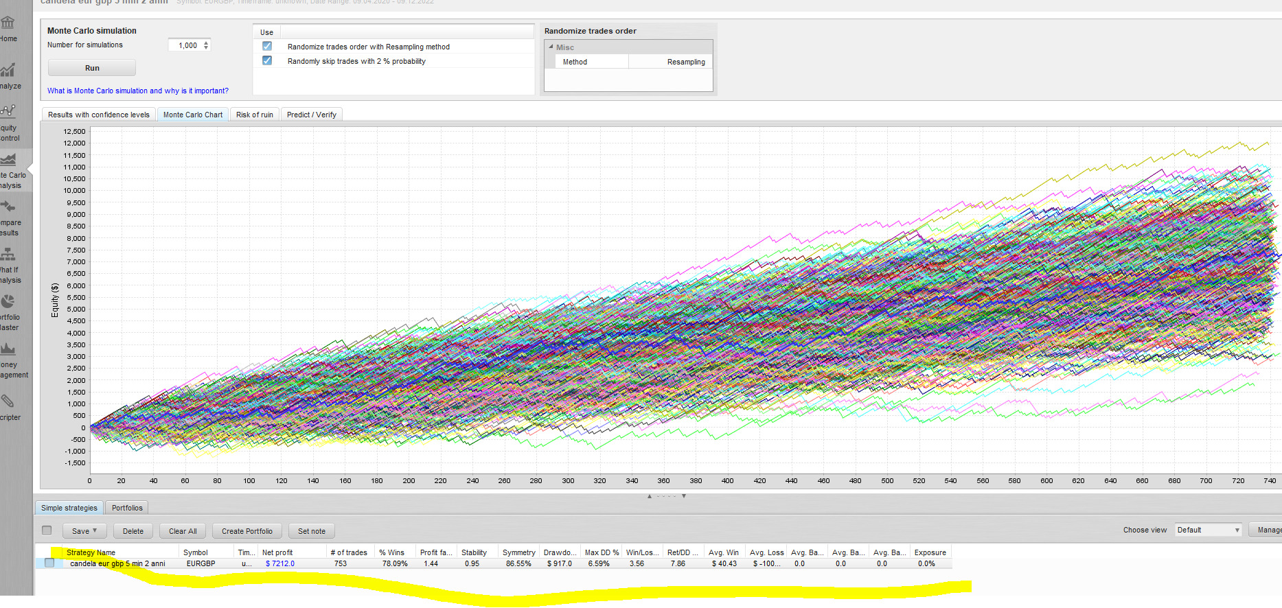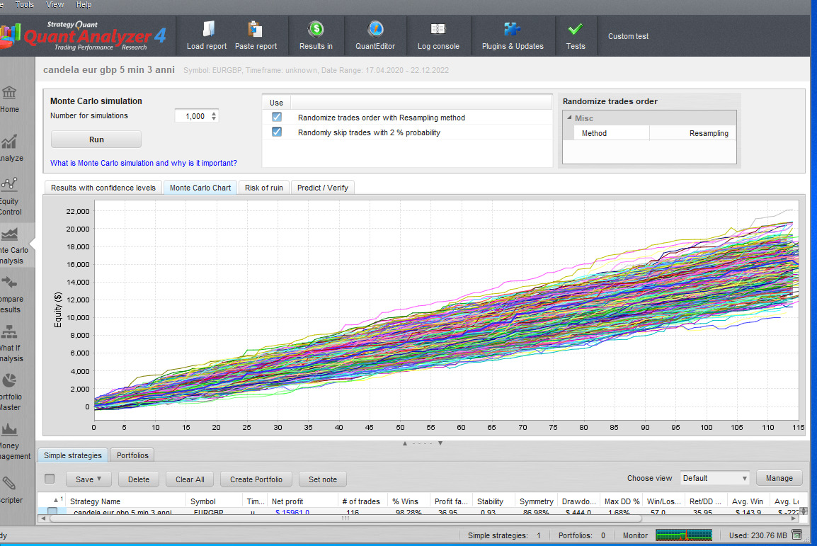 Ho usato il software di Quant Analizer per l’equity chart e per Montecarlo e non ho messo lo spred, devo provarlo con esso?