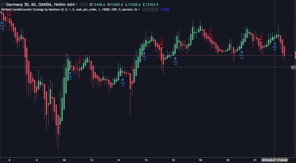 This system basically counts Heikin Ashi Candles and enters after the number of candles has been met and colour has been met- long or short. Unfortunately I don’t have any screen shots of it working on Pro Real Time, but I do on trading view which is attached below in a screen shot.