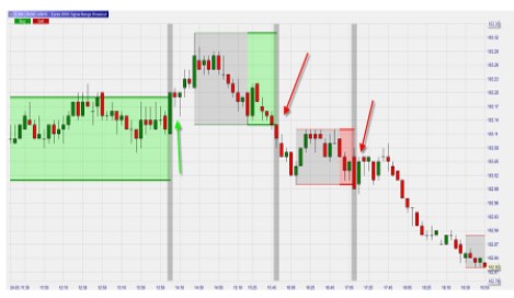 There is no explanation on how are found the range zones. However I think it might be something like X candles haven’t moved more than Y points either up or down. Or a BB squeeze (BollingerBands inside Keltner Bands)?