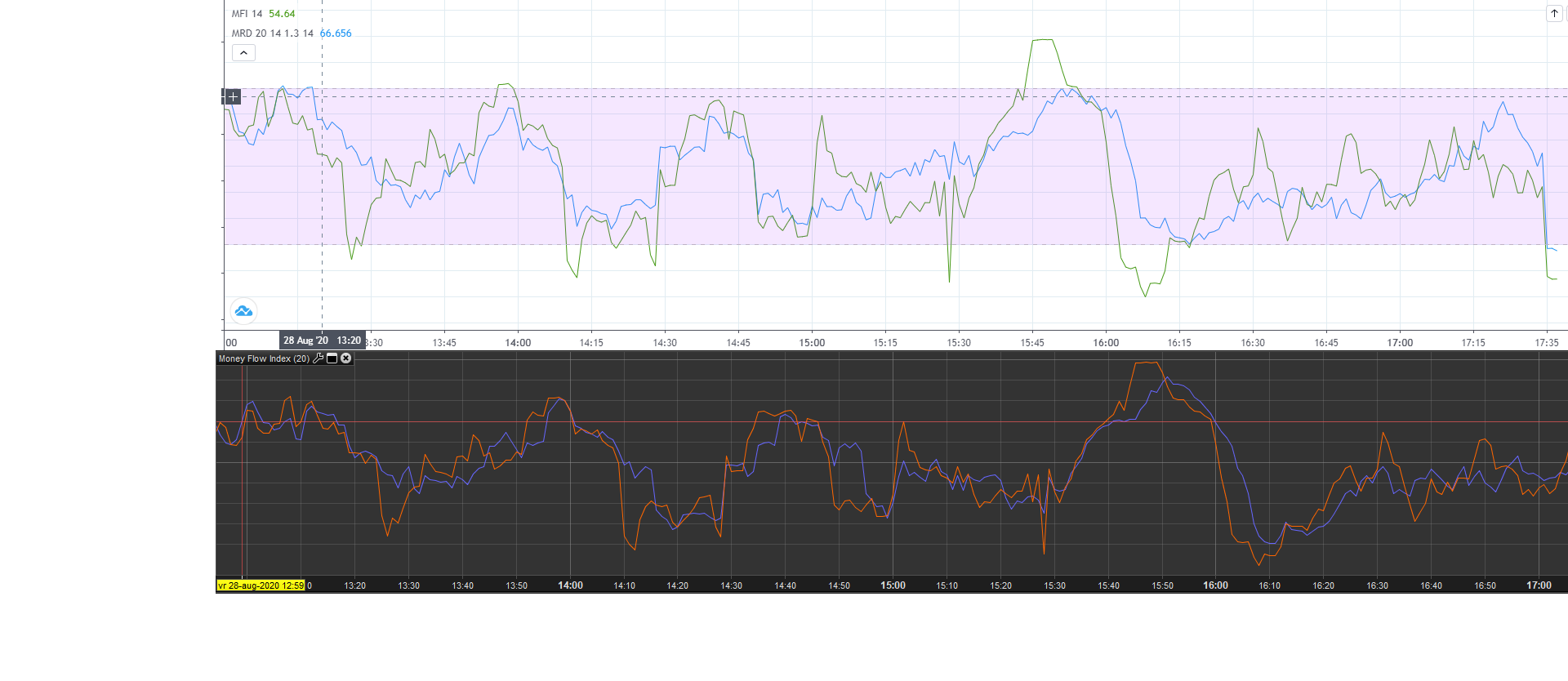 Thank you for this comment it actually helped me a lot. I noticed that they are indeed the same for RSI and MFI. However, this only applies when the MFI indicator is set on 14 periods. For the RSI it worked when it was set to both 14 and 20. The problem is, that I need the 20 periods on both indicators for it to work. I have attached the comparison.
