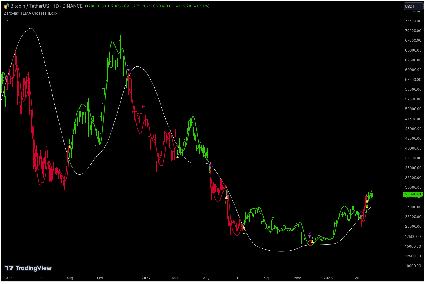 plot(temaslow, “Zero-lag TEMA Crosses Slow”, color = color.white, linewidth = 1)
