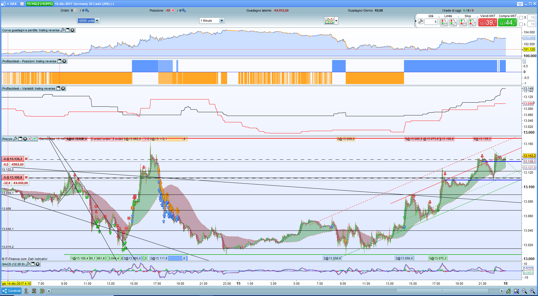 Esatto quando longonmarket vorrei avere un ordine sellshort al prezzo -50 punti dal massimo e quando shortonmarket un ordine buy a +50(dax) dal minimo, senza stop loss e tp per ora ,è sempre a mercato. Il problema è quando c’è molta volatilità e quindi barre molto lunghe gli ordini sono molto vicini, perchè utilizza troppe barre (tf 1min) per calcolare i massimi e minimi.