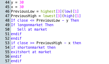 If close <= PreviousLow - y Then