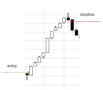 - if the next bar’s low is not higher, either the old stoploss level will remain, or like in the graphic, it will trigger a sell order