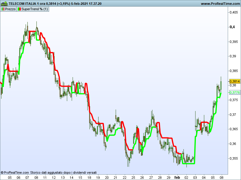 Buongiorno a tutti, avrei bisogno di un indicatore tipo supertrend che fa da trailing profit sul grafico prezzo, ma invece che essere basato sulla volatilità sia basata sulla distanza % dal prezzo di chiusura che imposto io.
