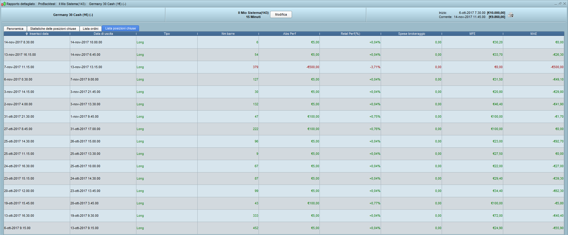 come puoi vedere da screenshot, in data 13/11/2017 la posizione si e chiusa con stop di 500pt (le operazioni sono state eseguite con il codice allegato sopra su time frame 15 minuti)