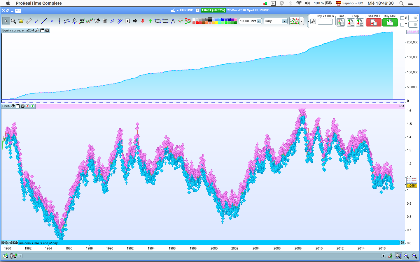 What is the problem? it is to good to be truth, it works with forex pairs in daily timeframe, the attach contemplates a spread of 3 pips and a order fee of $2. the initial capital is $10000. Here is the simple code: