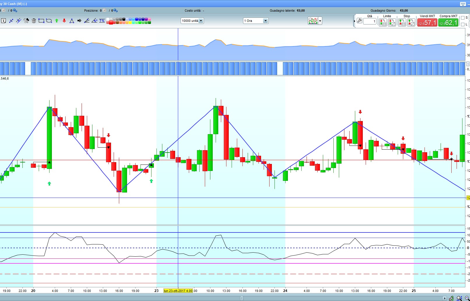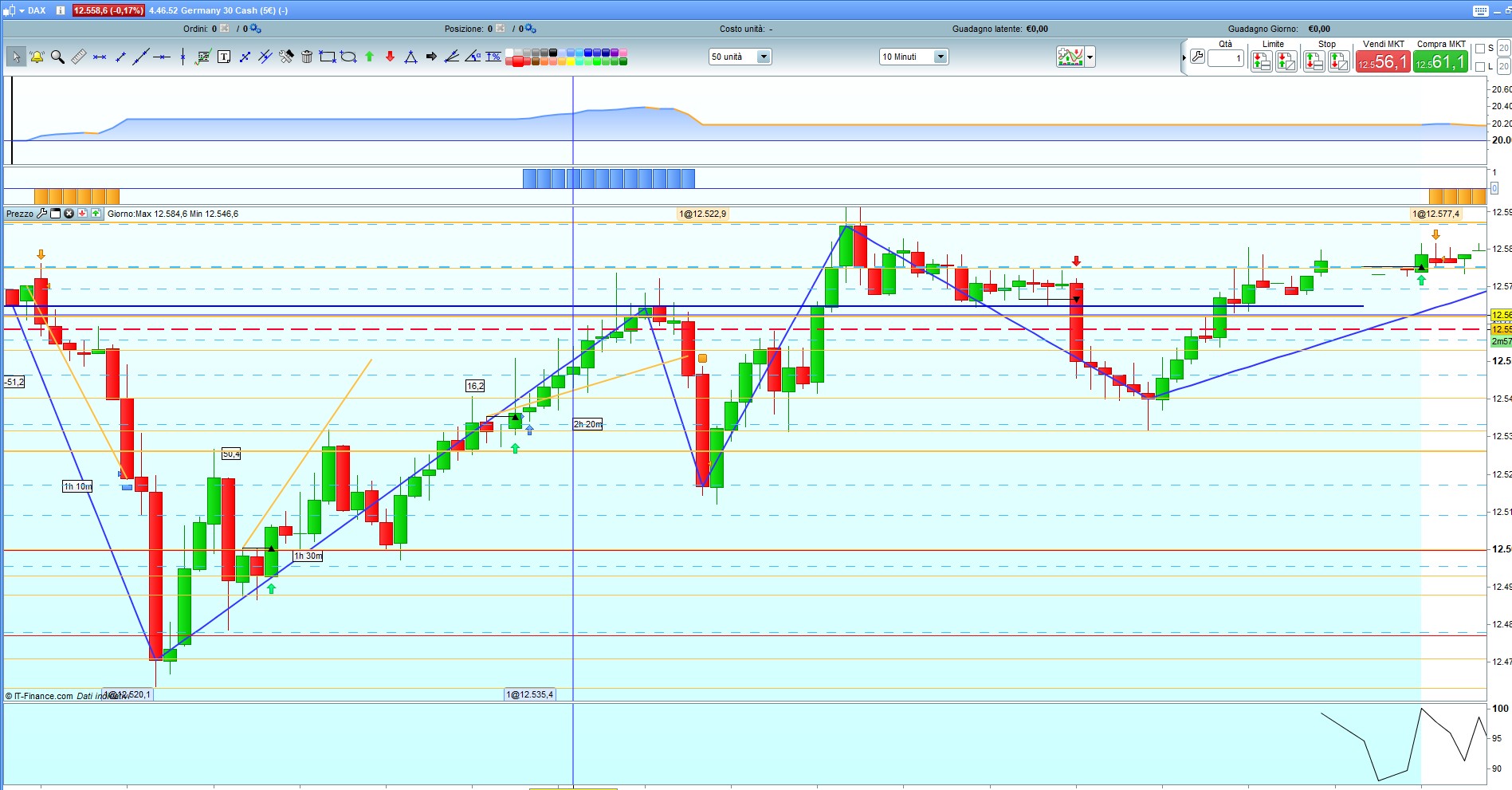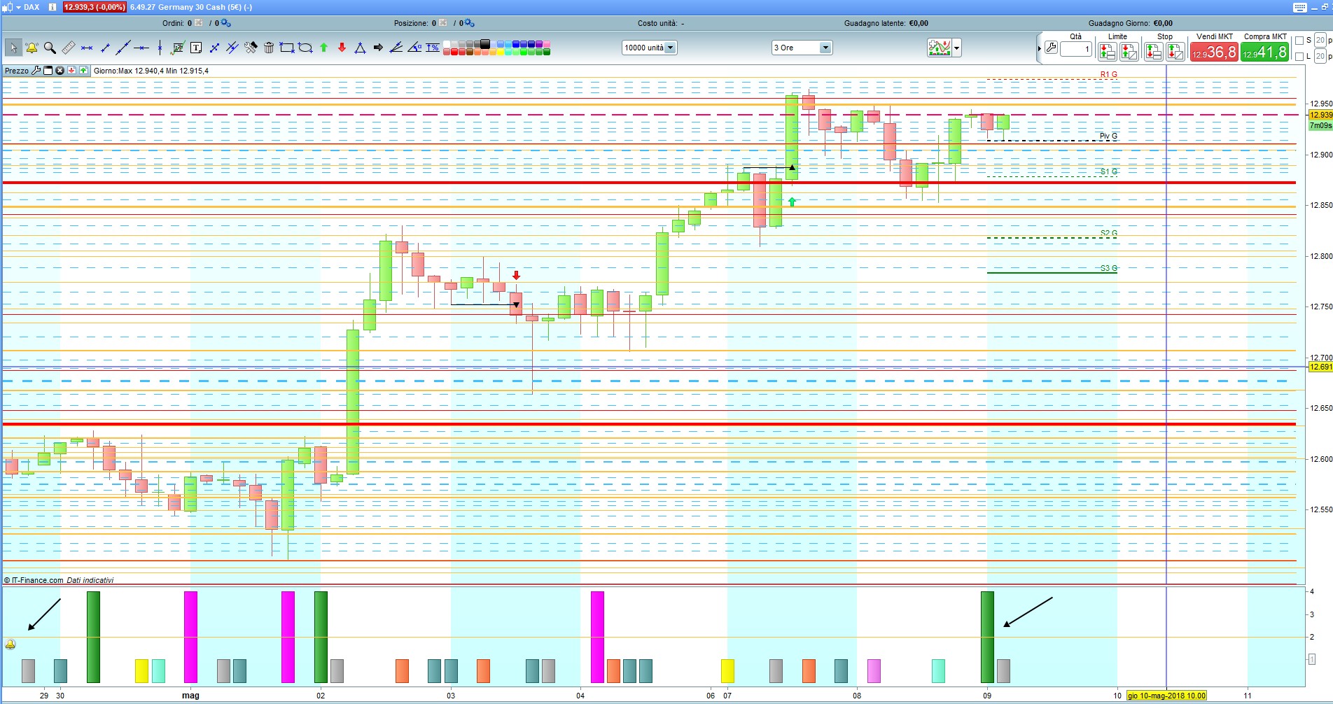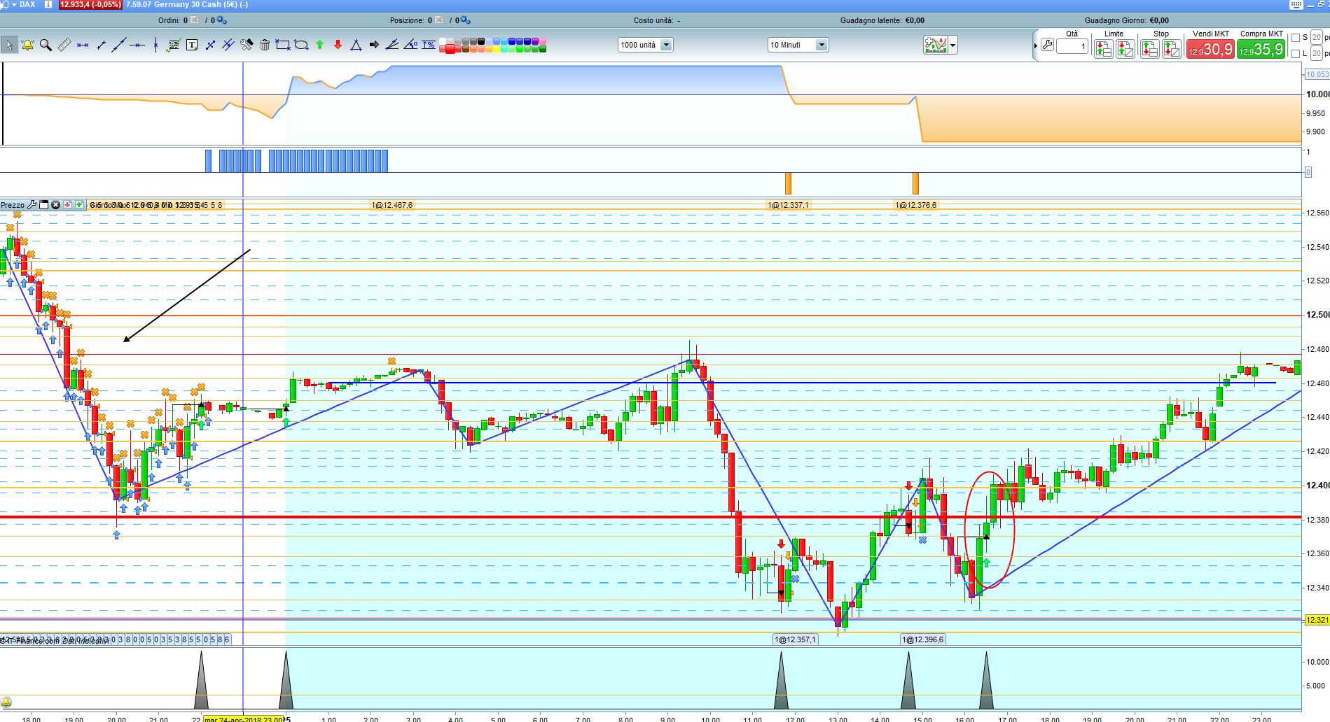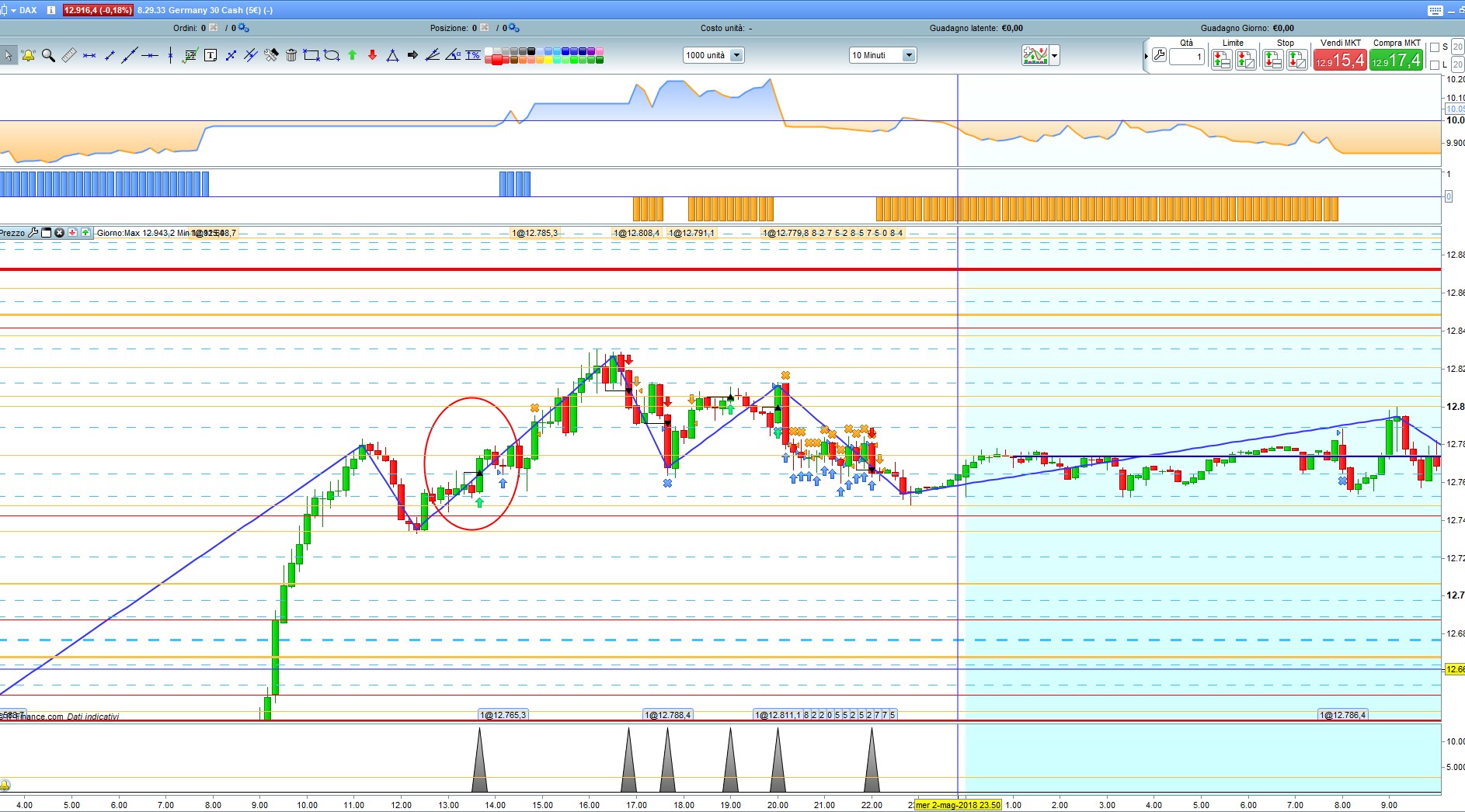 E’ il Dax?, su quale TF? L’indicatore è predisposto per le normali candele, tu lo hai messo su un grafico in HA, ma lui continua a lavorare con le candele giapponesi normali, quello che è sul grafico lo ignora completamente.