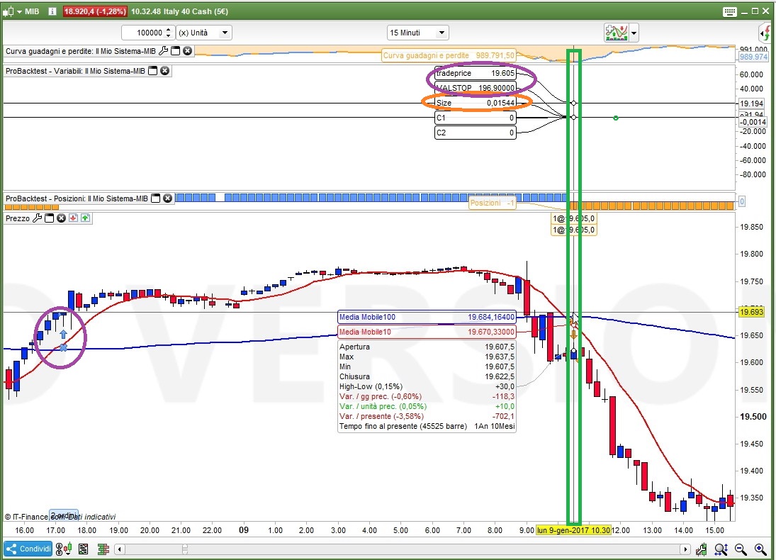 - ProOrder ha bisogno di una barra per potere aggiornare TRADEPRICE (e tutto quel che concerne un’operazione), per cui il prezzo che ti restituisce subito dopo l’entrata a mercato è il prezzo dell’operazione precedente; se vuoi il prezzo corrente, essendo un’entrata a mercato, usa CLOSE al posto di Tradeprice, non sarà preciso al 100% perché quando entra a mercato (almeno in reale) c’è un minimo di slippage o gap e una differenza di qualche microsecondo che può influire sul reale prezzo di entrata