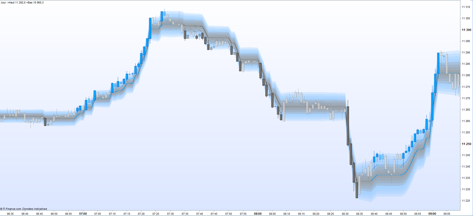 return TrendFast coloured (cr,cg,cb,ct) style(line,2) as "Trend Fast" , MID1 coloured (RxDOWN,GxDOWN,BxDOWN,15) style(line,1) as "MID1" , MID2 coloured (RxDOWN,GxDOWN,BxDOWN,15) style(line,1) as "MID2" , MID3 coloured (RxDOWN,GxDOWN,BxDOWN,15) style(line,1) as "MID3" , MID4 coloured (RxDOWN,GxDOWN,BxDOWN,15) style(line,1) as "MID4" , MID5 coloured (RxUP,GxUP,BxUP,15) style(line,1) as "MID5" , MID6 coloured (RxUP,GxUP,BxUP,15) style(line,1) as "MID6" , MID7 coloured (RxUP,GxUP,BxUP,15) style(line,1) as "MID7" , MID8 coloured (RxDOWN,GxDOWN,BxDOWN,15) style(line,1) as "MID8" , MID9 coloured (RxDOWN,GxDOWN,BxDOWN,15) style(line,1) as "MID9" , MID10 coloured (RxDOWN,GxDOWN,BxDOWN,15) style(line,1) as "MID10" , MID11 coloured (RxDOWN,GxDOWN,BxDOWN,15) style(line,1) as "MID11" , MID12 coloured (RxUP,GxUP,BxUP,15) style(line,1) as "MID12" , MID13 coloured (RxUP,GxUP,BxUP,15) style(line,1) as "MID13" , MID14 coloured (RxUP,GxUP,BxUP,15) style(line,1) as "MID14" , hiband coloured (RxUP,GxUP,BxUP,15) style(line,1) as "Hiband" , loband coloured (RxUP,GxUP,BxUP,15) style(line,1) as "Loband" , Limitt coloured (cr,cg,cb,ct) style(line,1) as "Limit"