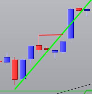 Die blauen Linien sollen am Hoch der Kerze beginnen, die auf den folgenden 3 Kerzen kein neues Hoch macht. Siehe Bild
