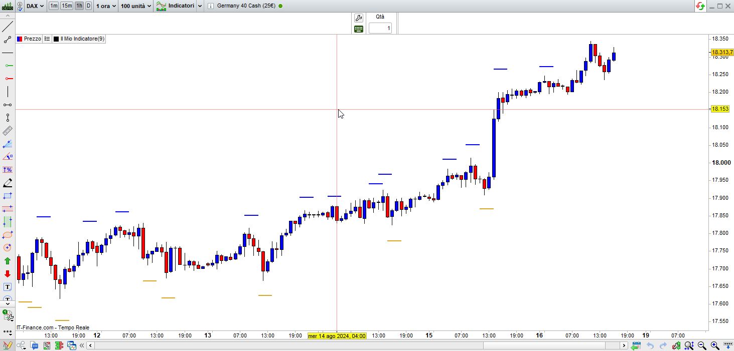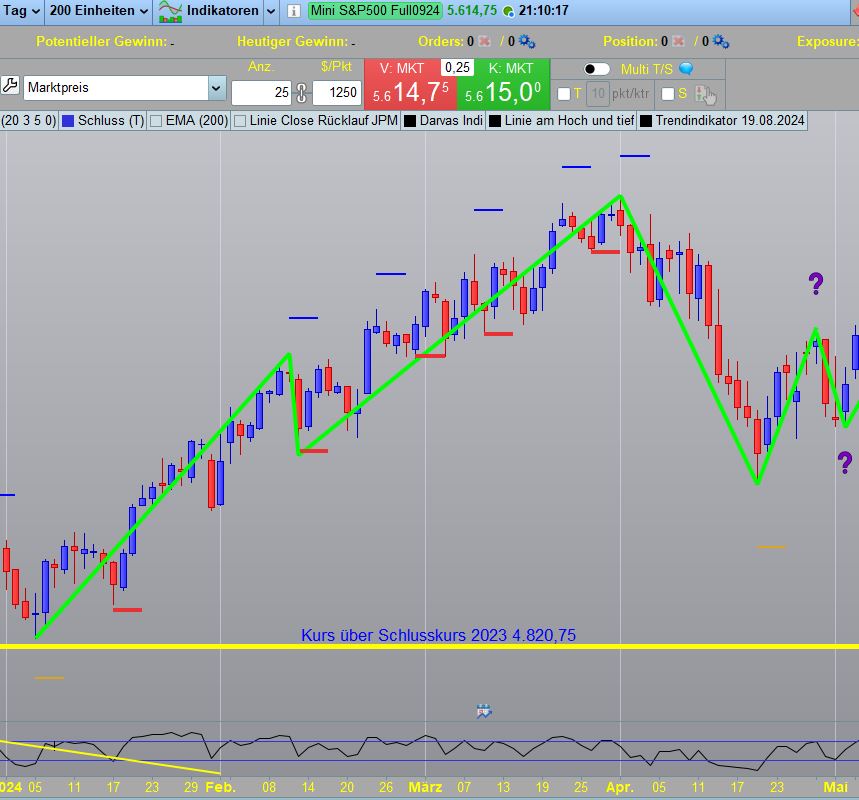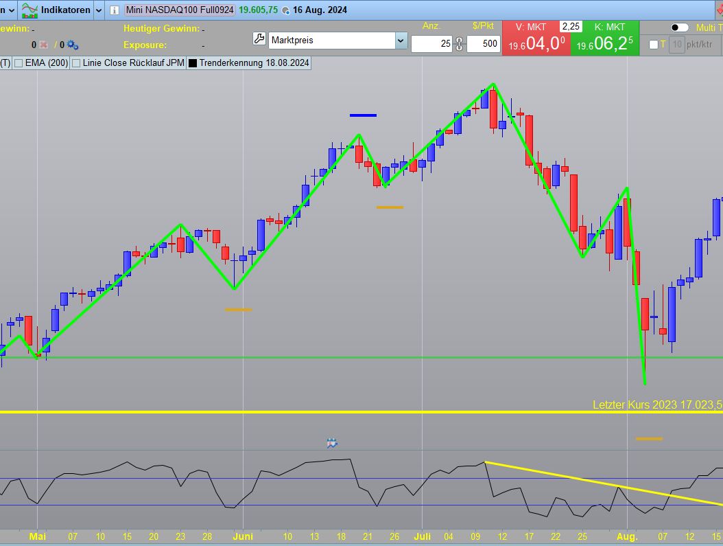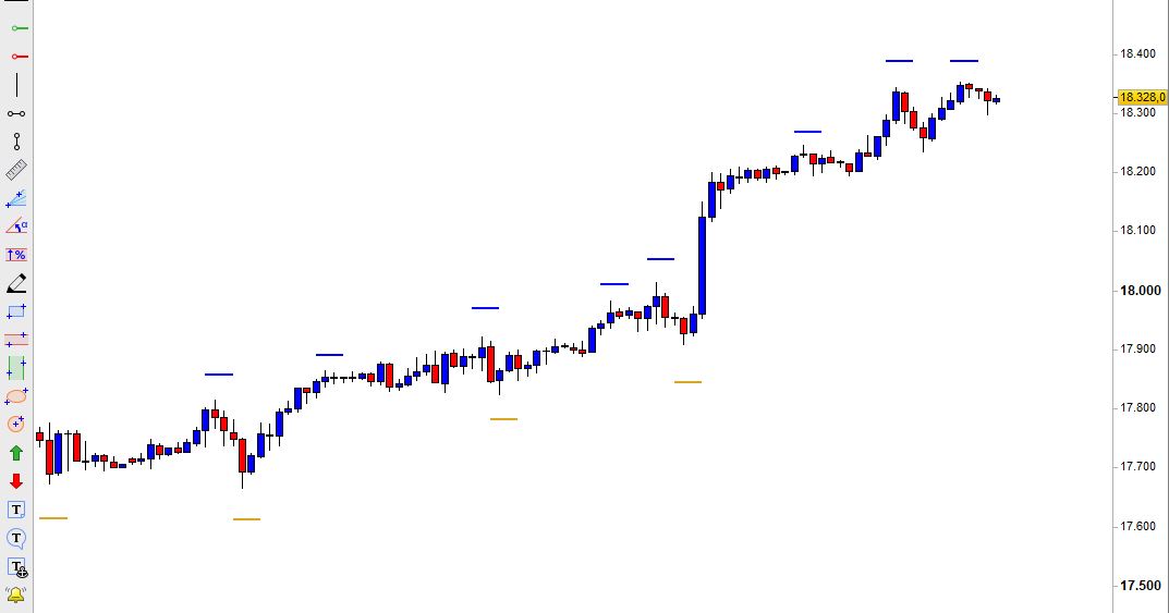 Absoluter Bonus wäre natürlich, wenn die Hochs und Tiefst mit der jeweiligen Nummer beschriftet werden könnten, wie 1.HH (Higher High) , 2.LL, 2. HH usw. das wäre aber das Topping und nicht unbedingt nötig.