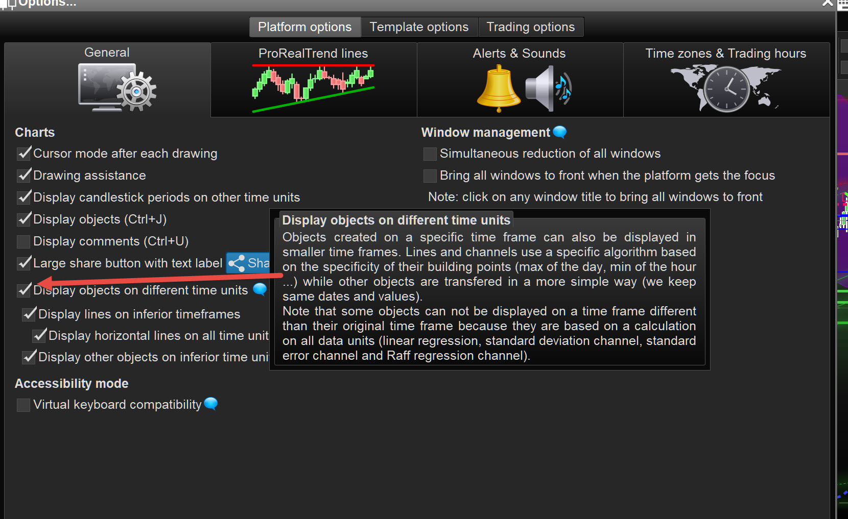 For example : I use yesterday’s high and low on the intraday chart but I don’t want to see it when I switch on the daily or weekly time frame