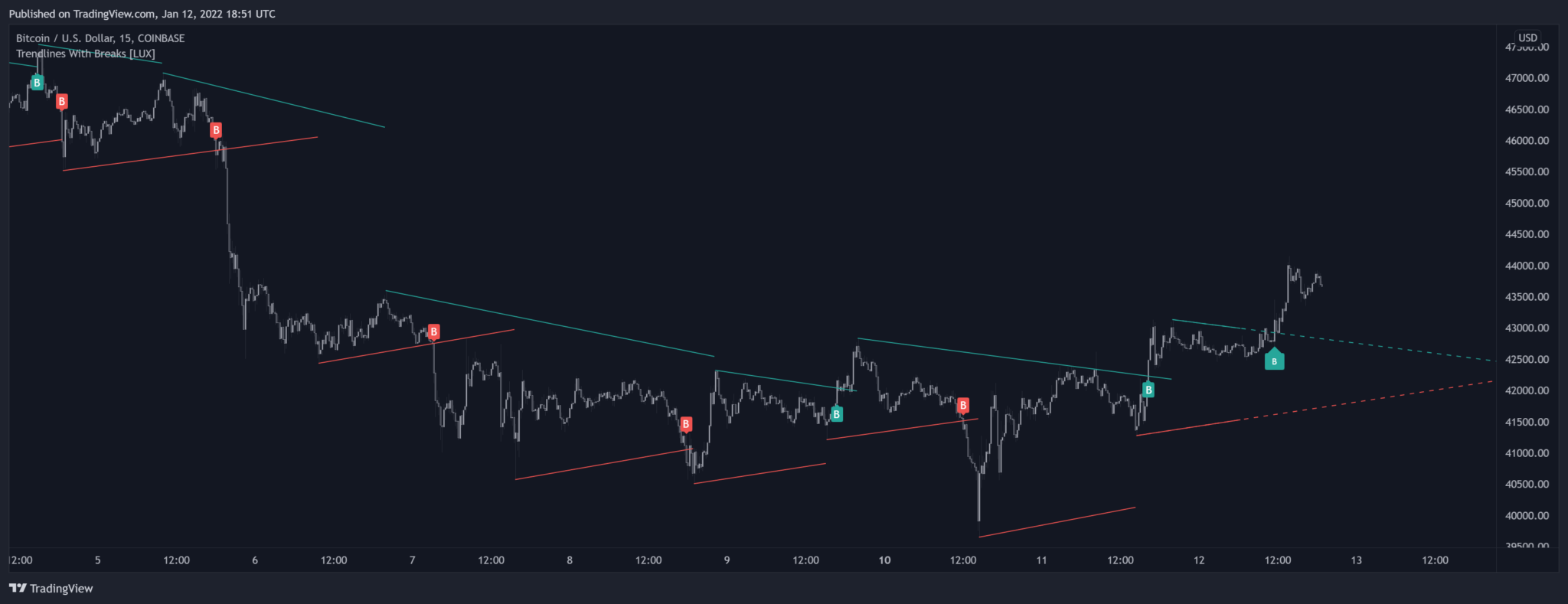 indicator("Trendlines With Breaks [LUX]",overlay=true)