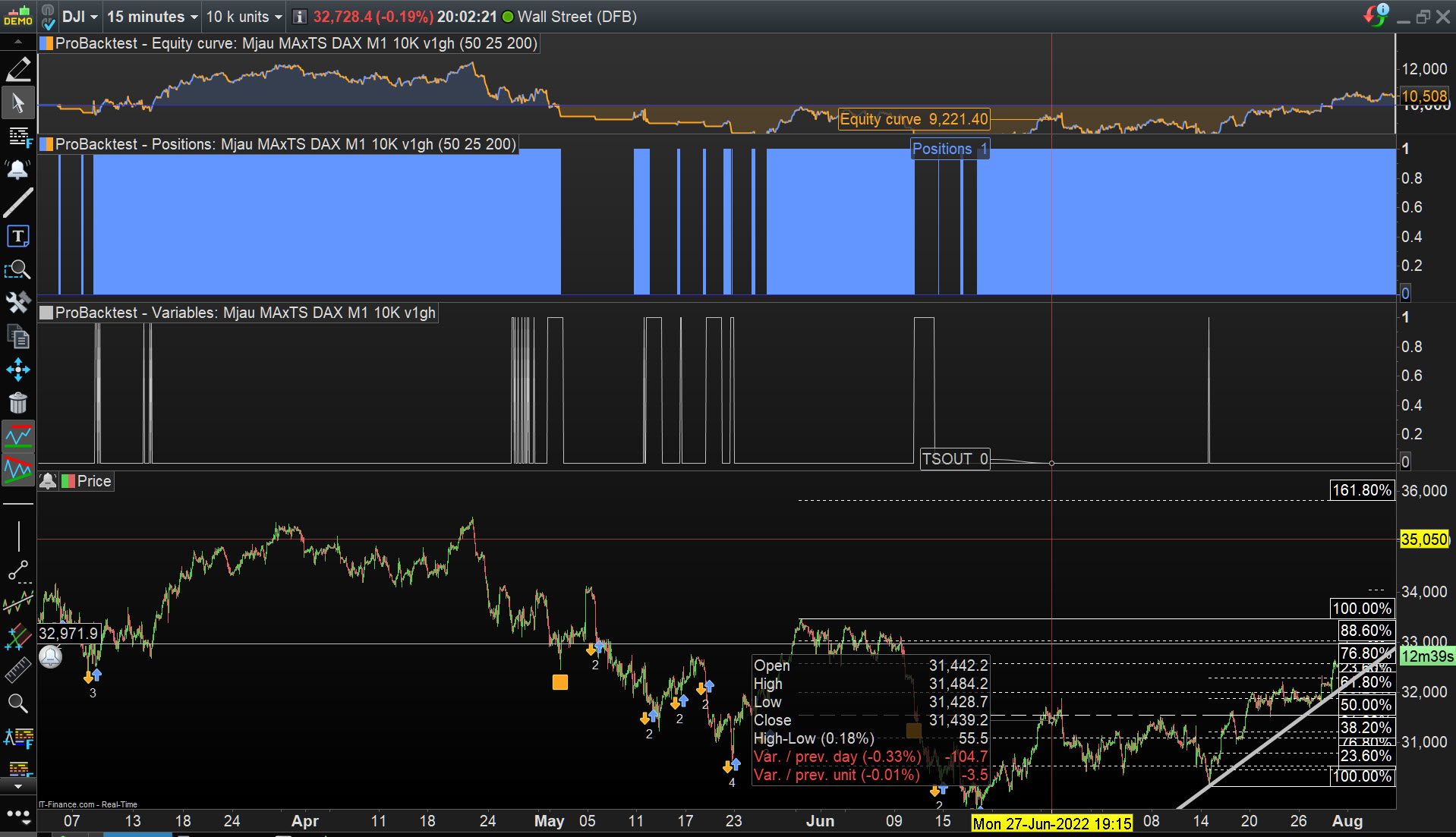 If you change your settings from 1min to 30 min, the problem becomes even more clearly. There you can for example see one trade that was good in profit fall 1000p without beeing sold.