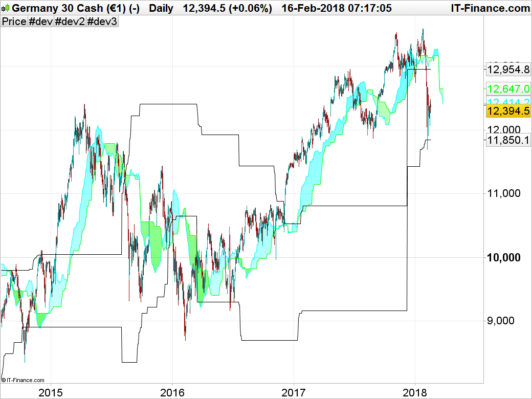Voilà ce que j’ai codé rapidement d’après cette idée. Si on a eu au moins 3 croisements du nuage sur les 120 dernières périodes, alors la valeur du range supérieur et inférieur est égal au plus haut/ plus bas d’il y a 120 barres.